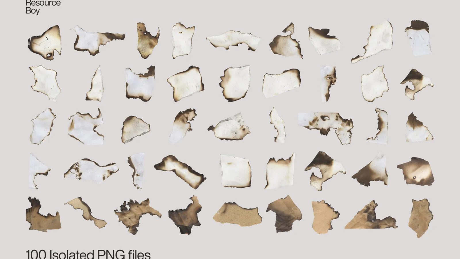 Introducing our collection of 100 Burnt Edge Paper Textures, featuring a variety of hand-created transparent PNGs. This pack includes textures made from white paper, cardboard, and kraft paper, ensuring high resolution and quality. Each texture has been meticulously designed to provide a realistic appearance, perfect for enhancing your creative projects.
