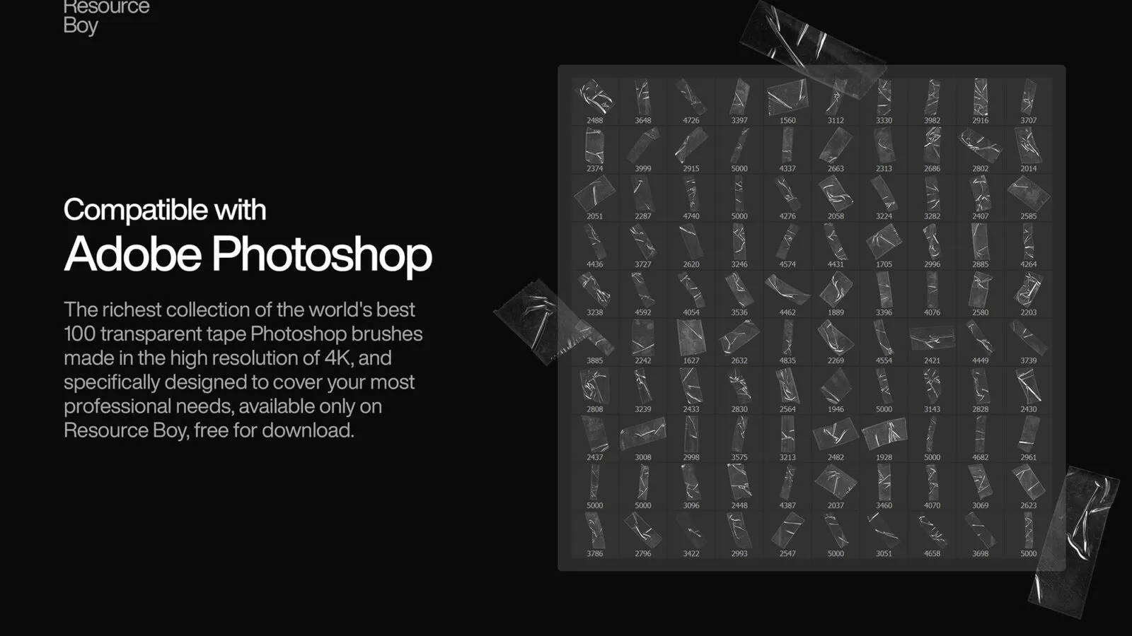 Introducing a collection of 100 transparent tape Photoshop brushes designed for graphic designers and artists. These high-quality brushes provide realistic tape effects that can enhance your projects, whether you are creating scrapbooks, music covers, posters, or website banners. With this versatile set, you can easily add a unique artistic touch to your designs.