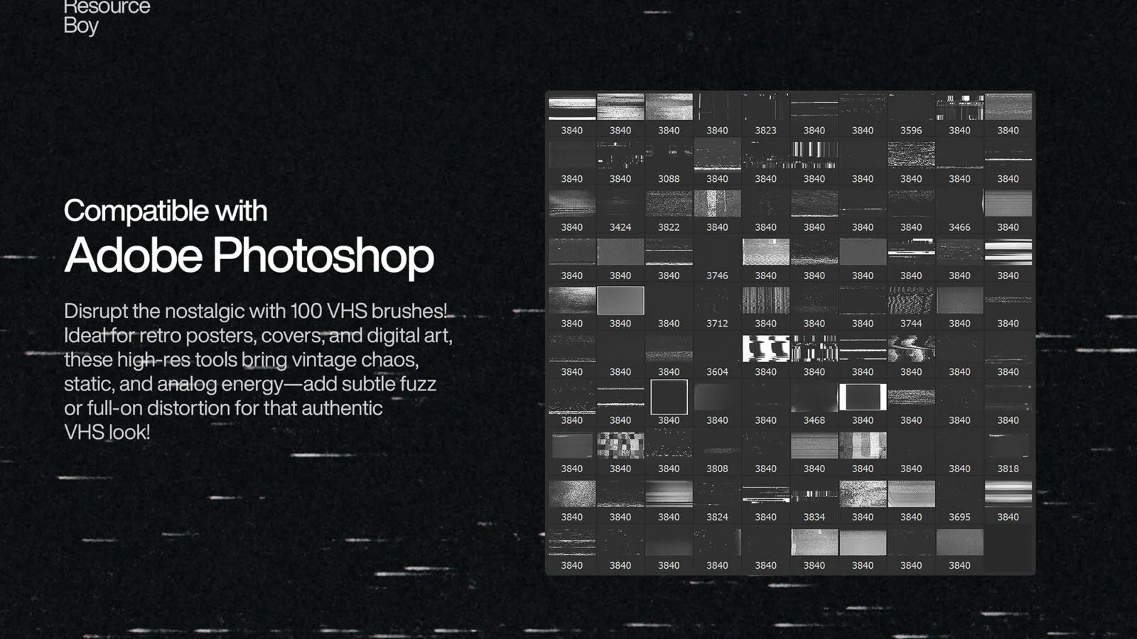 Description: The unique charm of VHS offers a raw and imperfect beauty that digital formats cannot replicate. Our design team dedicated weeks to exploring real VHS footage, capturing the flickers, static bursts, and tracking glitches to create 100 authentic VHS Photoshop Brushes. Each brush adds a nostalgic texture to your projects, providing a vintage feel that enhances your designs.