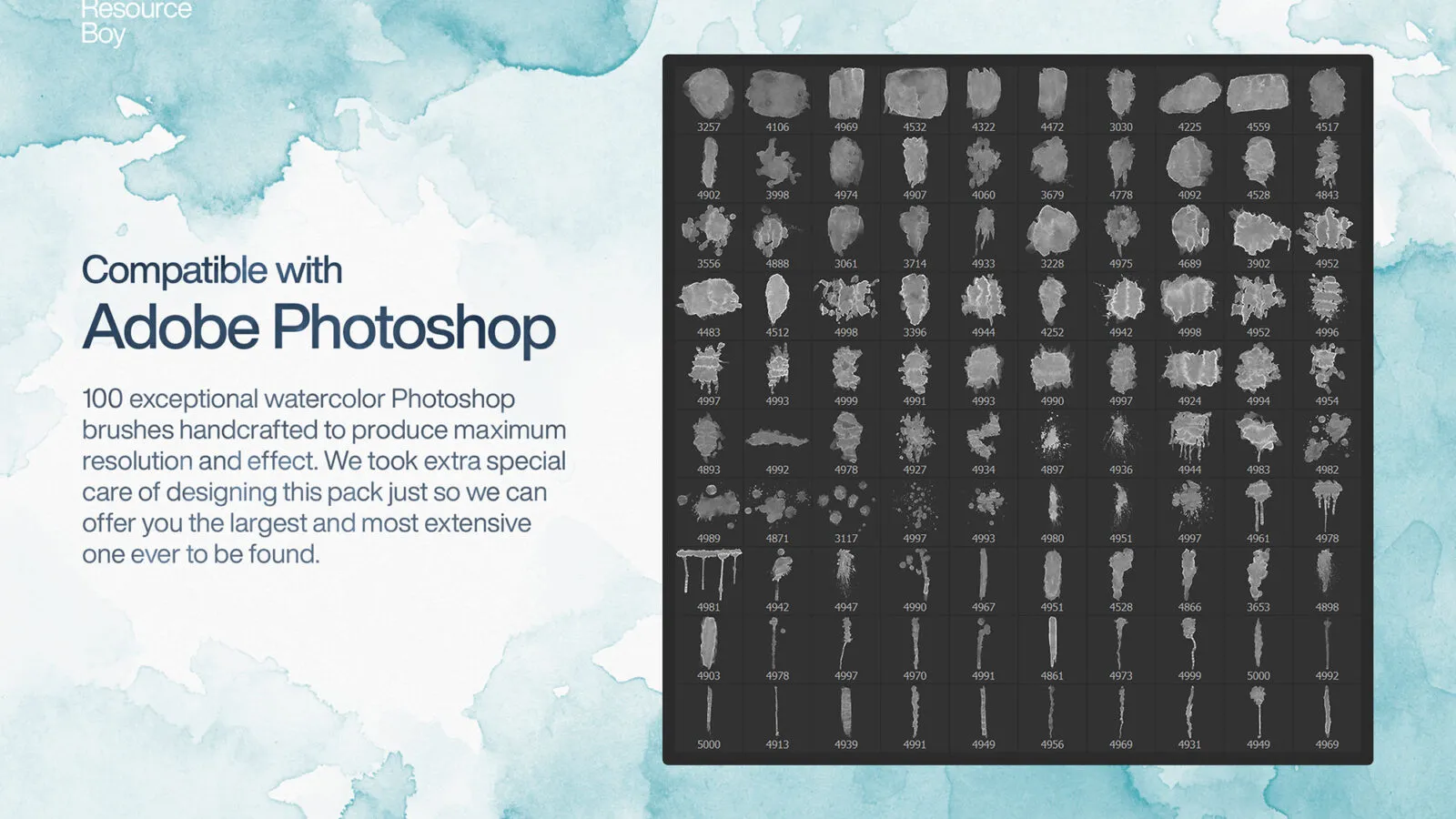 100 Watercolor Photoshop Brushes is a carefully curated collection designed for artists and designers who appreciate the versatility of watercolor effects. This set includes 100 high-quality brushes, offering a wide range of options for creating stunning artwork. With both size and resolution optimized for professional use, these brushes are perfect for enhancing your digital projects.