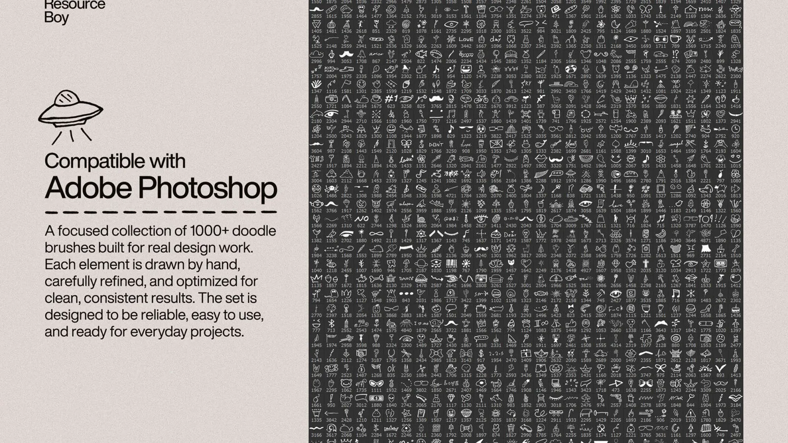 This doodle brush pack was created as a functional design tool, not as a byproduct of static artwork. Every element starts as a hand-drawn illustration and is then refined specifically for brush performance in Photoshop. Spacing, edge clarity, and responsiveness are carefully adjusted to ensure consistent results in real-world workflows.