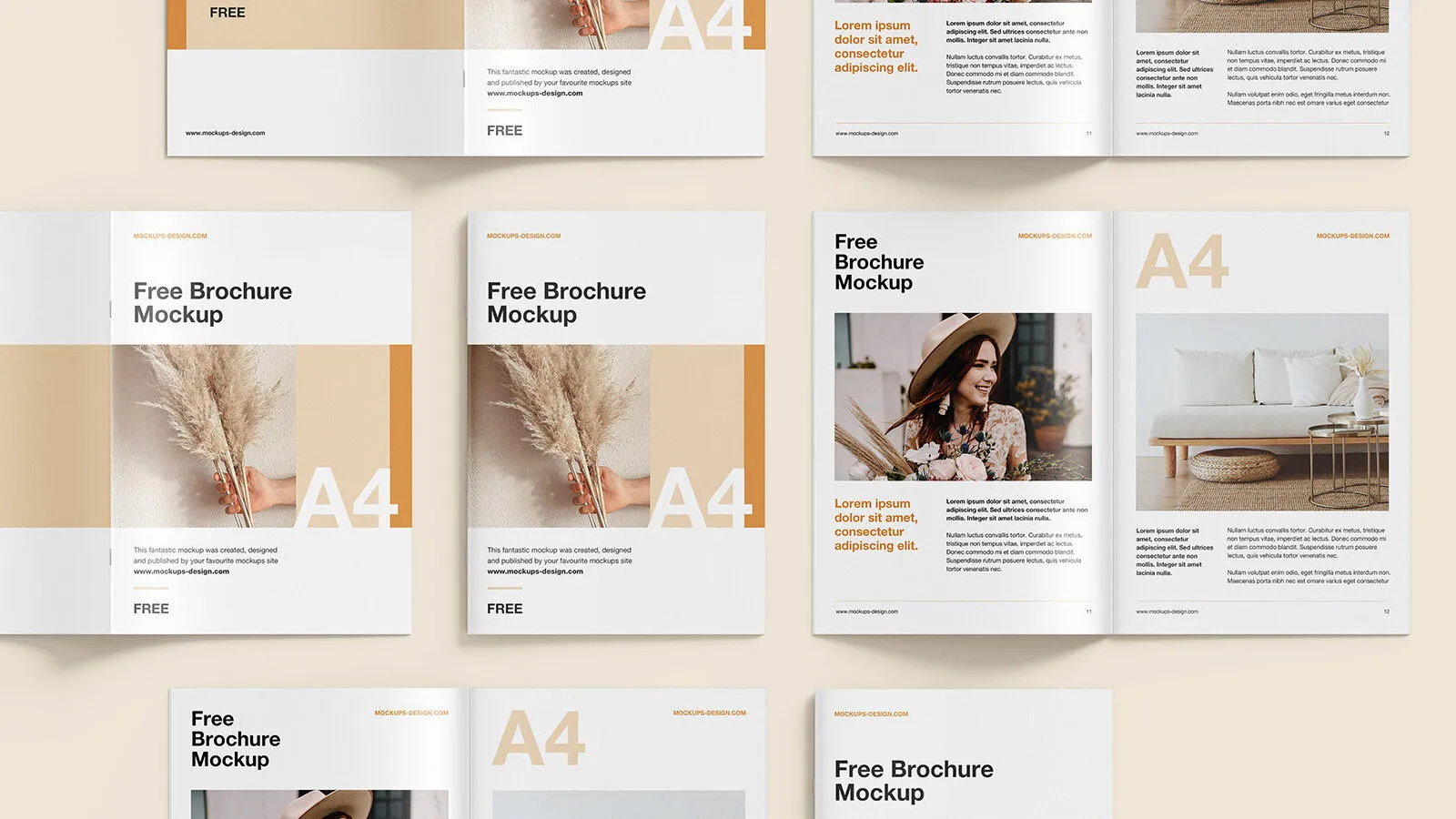 2 A4 Brochure Grid Mockups in Various Sights