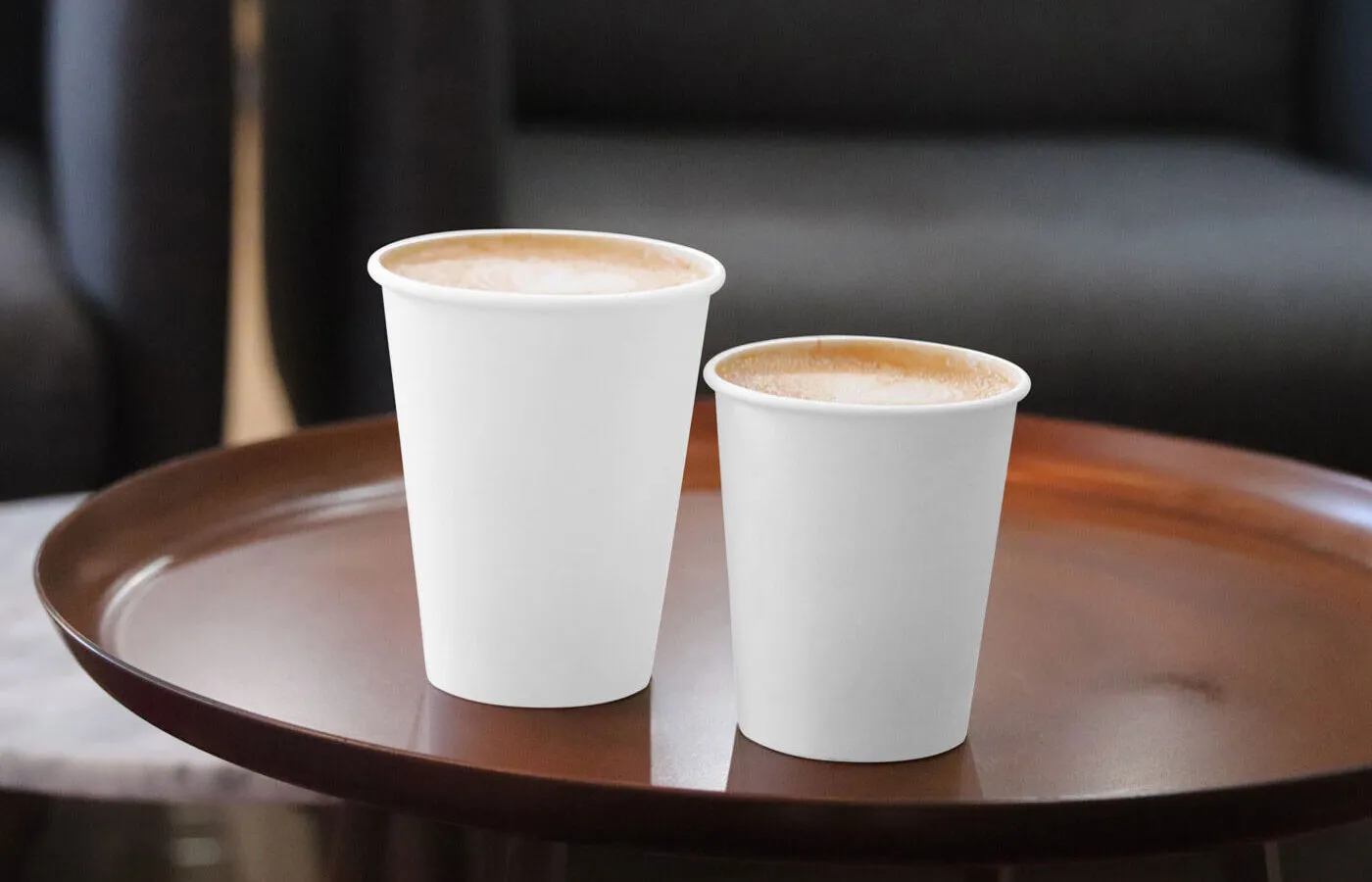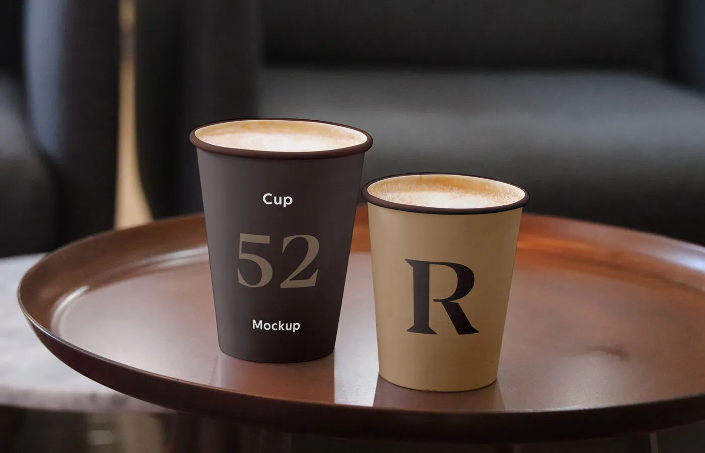 2 Coffee Cups Mockup in Tray and Dim Background