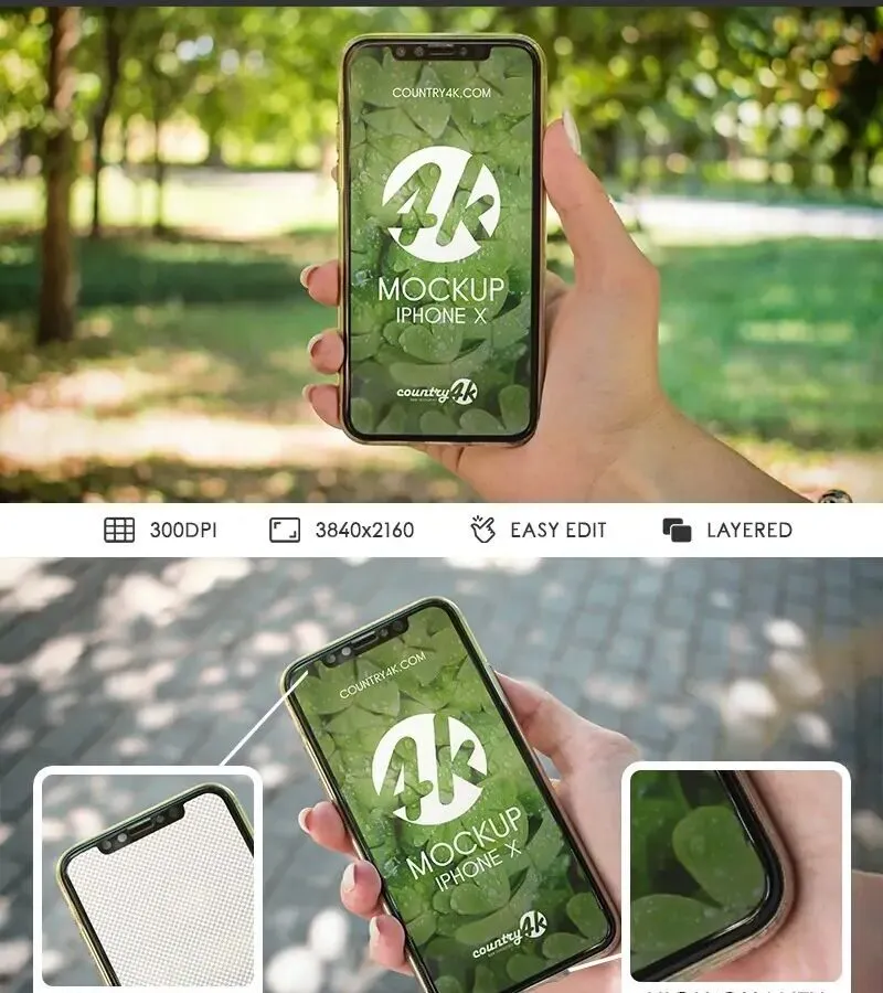 Display your logo or user interface designs effectively with these two iPhone X mockups. These mockups are highly detailed and feature 4k resolution, allowing you to showcase your designs with clarity and precision.