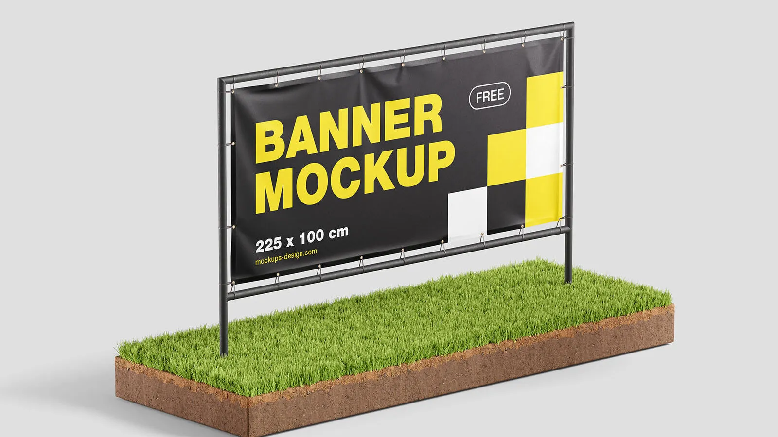 These mockups are designed to be both realistic and easy to use. Your banner designs will appear framed and set on a grass floor, providing a clean and professional look. With just a click, you can present your work in a distinctive and appealing way.