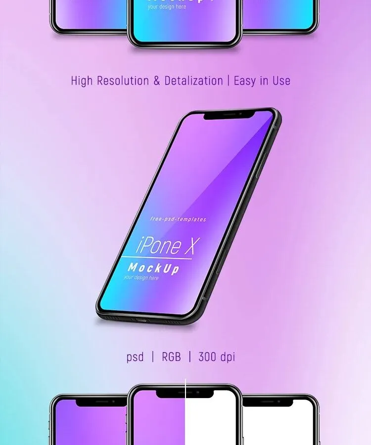 Each one comes with either a single iPhone or a collection of three of them in the front and half-side views. You can easily customize these PSD mockups to get your desired outcome. Take a tour of if you need more of this collection; you’ll find plenty of resources that you can get for free.