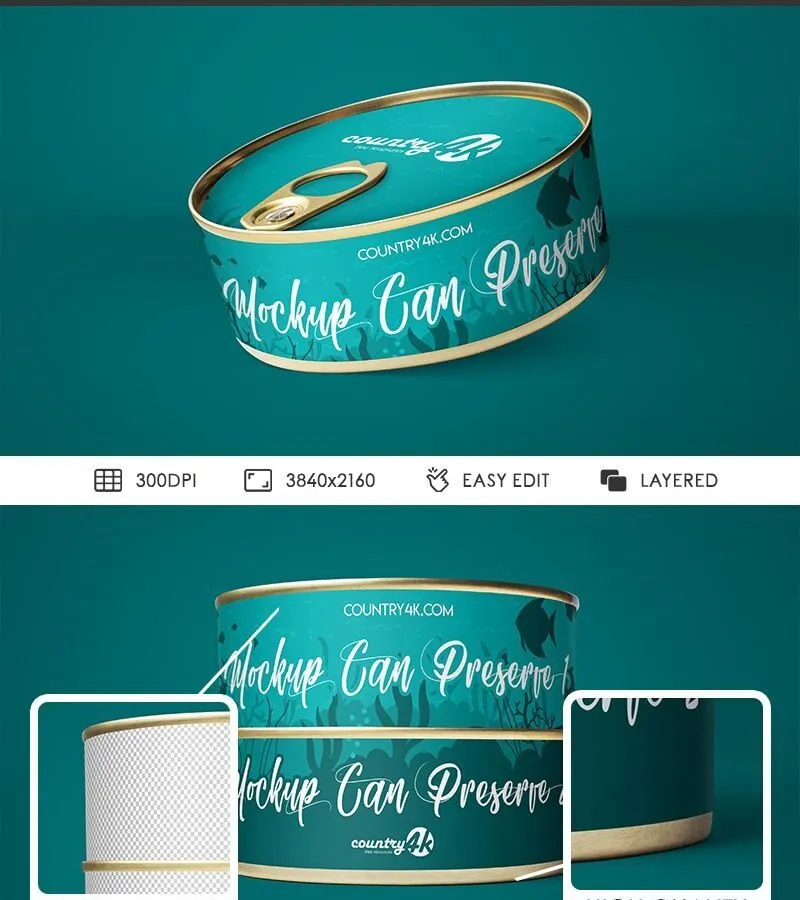 Canning packages are a reliable method for preserving the nutrients in foods like tuna, tomatoes, corn, and fruit. This mockup offers a realistic way to present your tuna can design from different angles, making it a useful tool for advertising and developing your brand identity.
