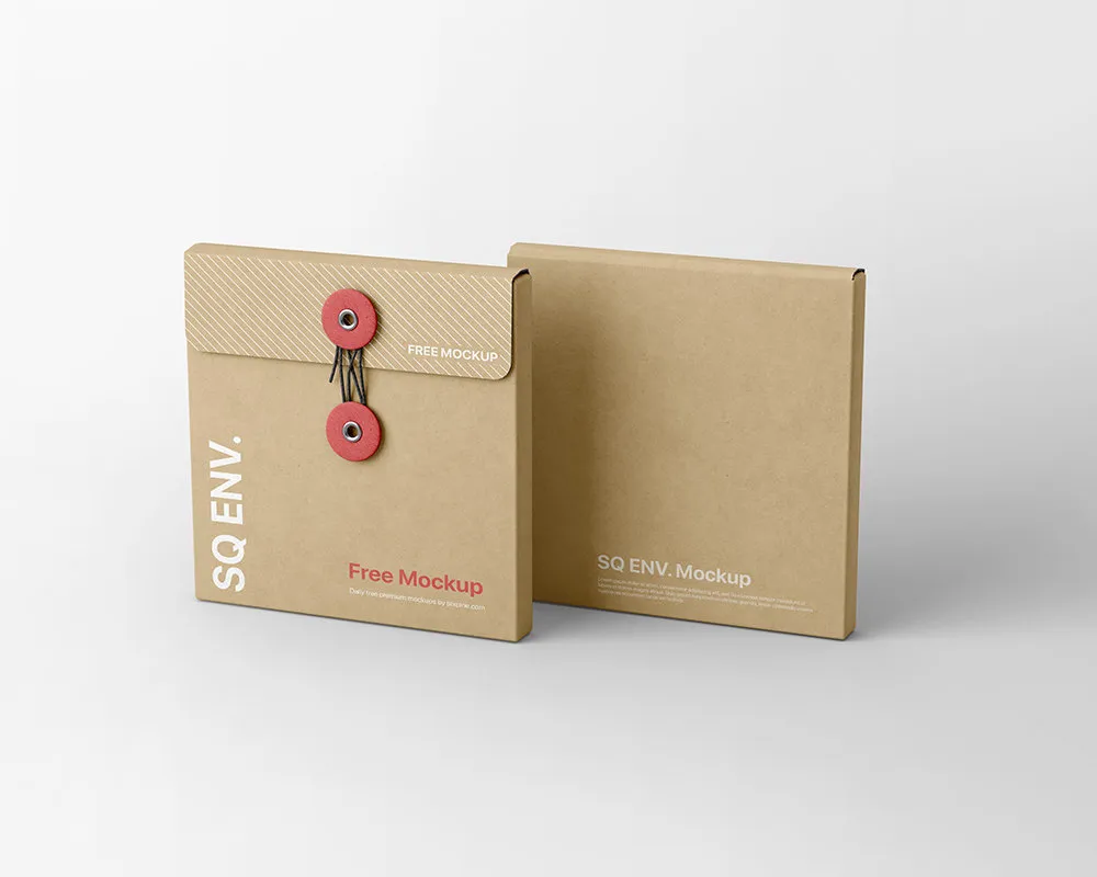 2 Square String Envelopes Mockup in Perspective View