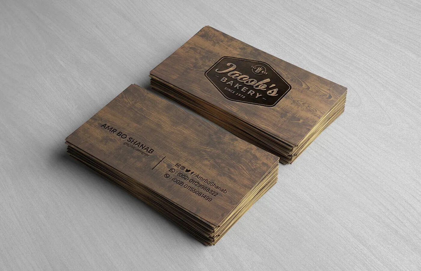 2 Stacks of Wooden Business Cards Mockup
