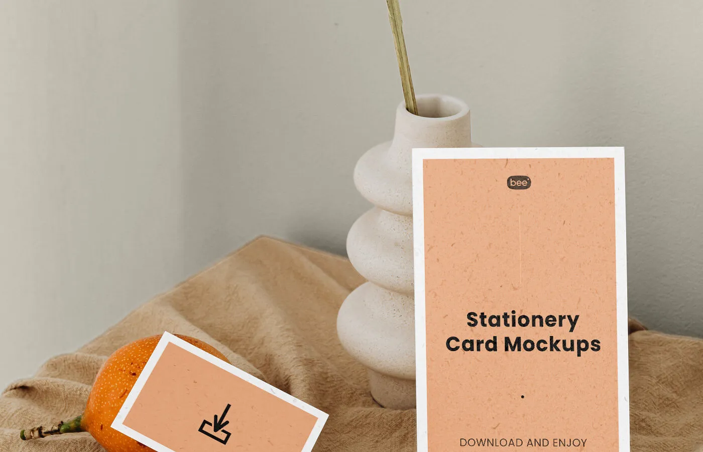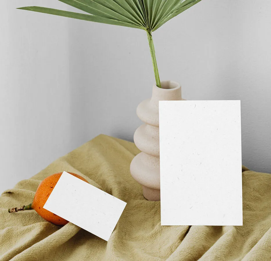 2 Stationery Eco Cards Mockup in Front View with Vase