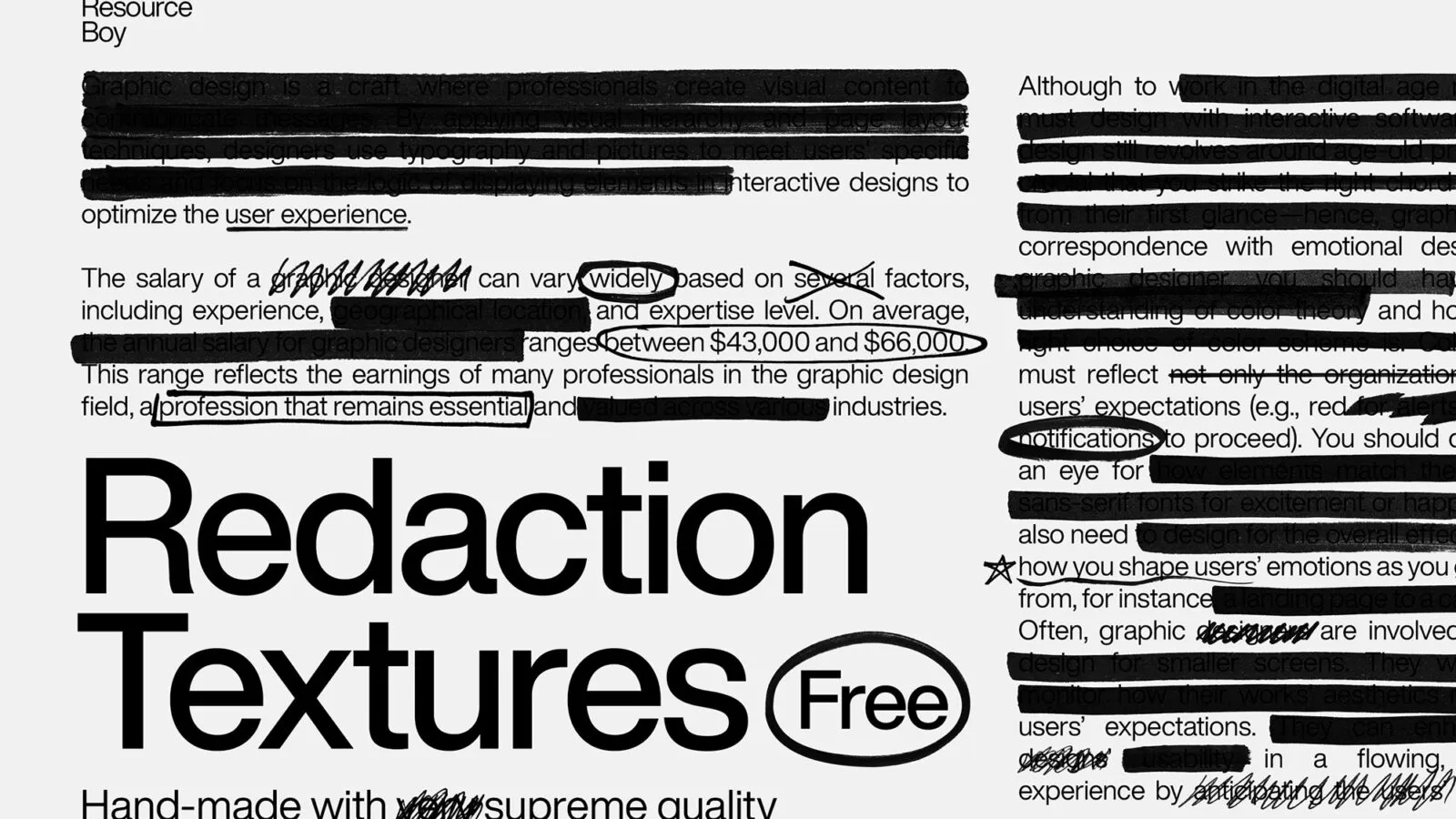 Never been fully satisfied with any of the redaction texture bundles you have purchased so far elsewhere? That’s because you have not yet tried Designers Lab’s exclusive redaction textures. Now is the best time to see what you’ve been missing. And here’s the big surprise. Unlike the other collections, ours will not cost you even a single penny. That’s how confident we are about the quality we offer on our website. As the first largest and richest collection ever published, our 200+ redaction textures are available at 4k resolution with transparent backgrounds to meet all your high standards at once. Amazing, isn’t it?