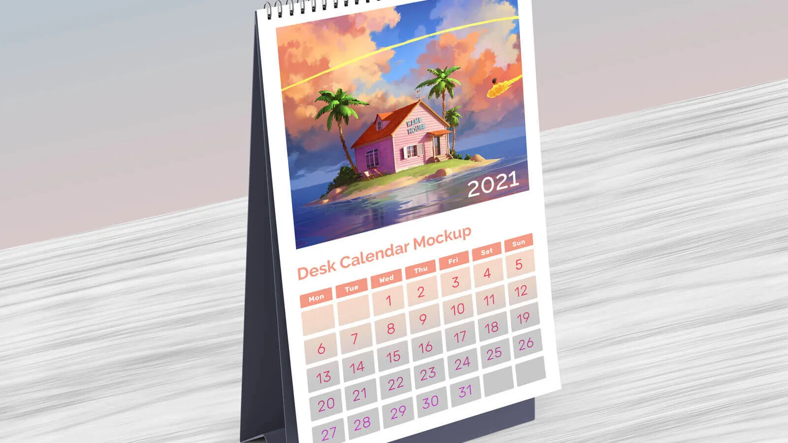 If you are looking for a vertical table or desktop calendar mockup, this 3/4 view version could be ideal for your design needs. The mockup features a detailed setting that can enhance the presentation of your calendar design.