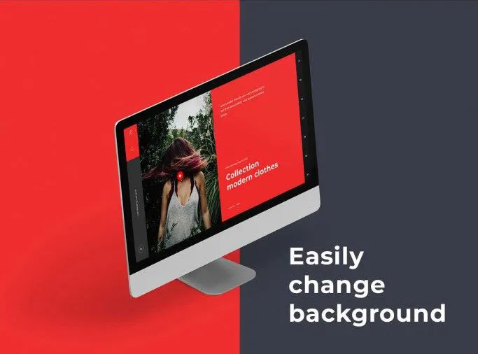 If you have an iMac screen presentation for your personal or work projects that you’re struggling with, this amazing and, by the way, easily editable mockup is right what you need. It features a single white in ¾ view, and thanks to the smart objects, you’re totally in charge of the background image.