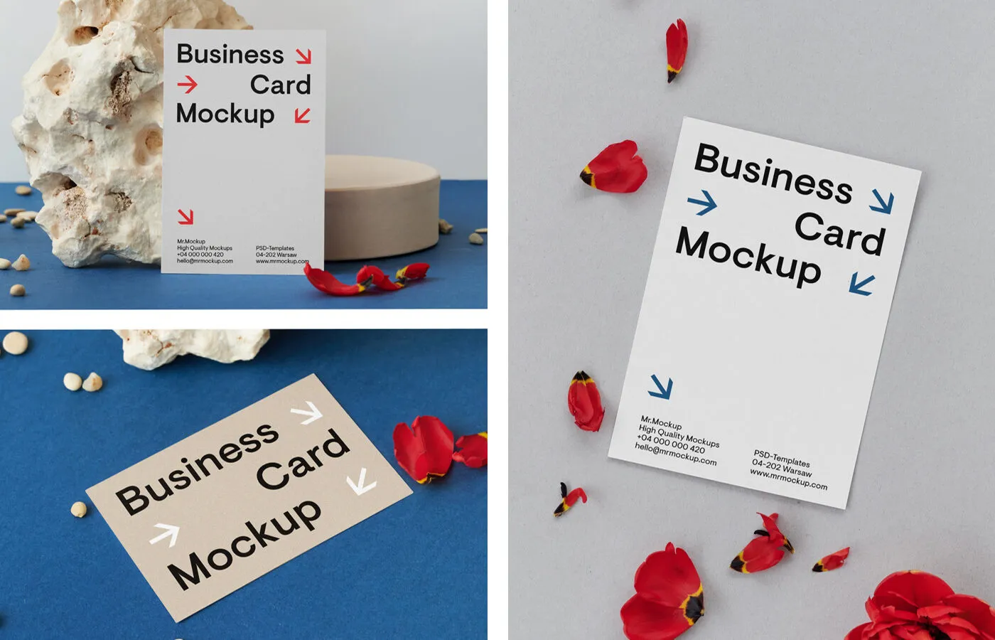 3 Business Card Mockups on Table with Flowers