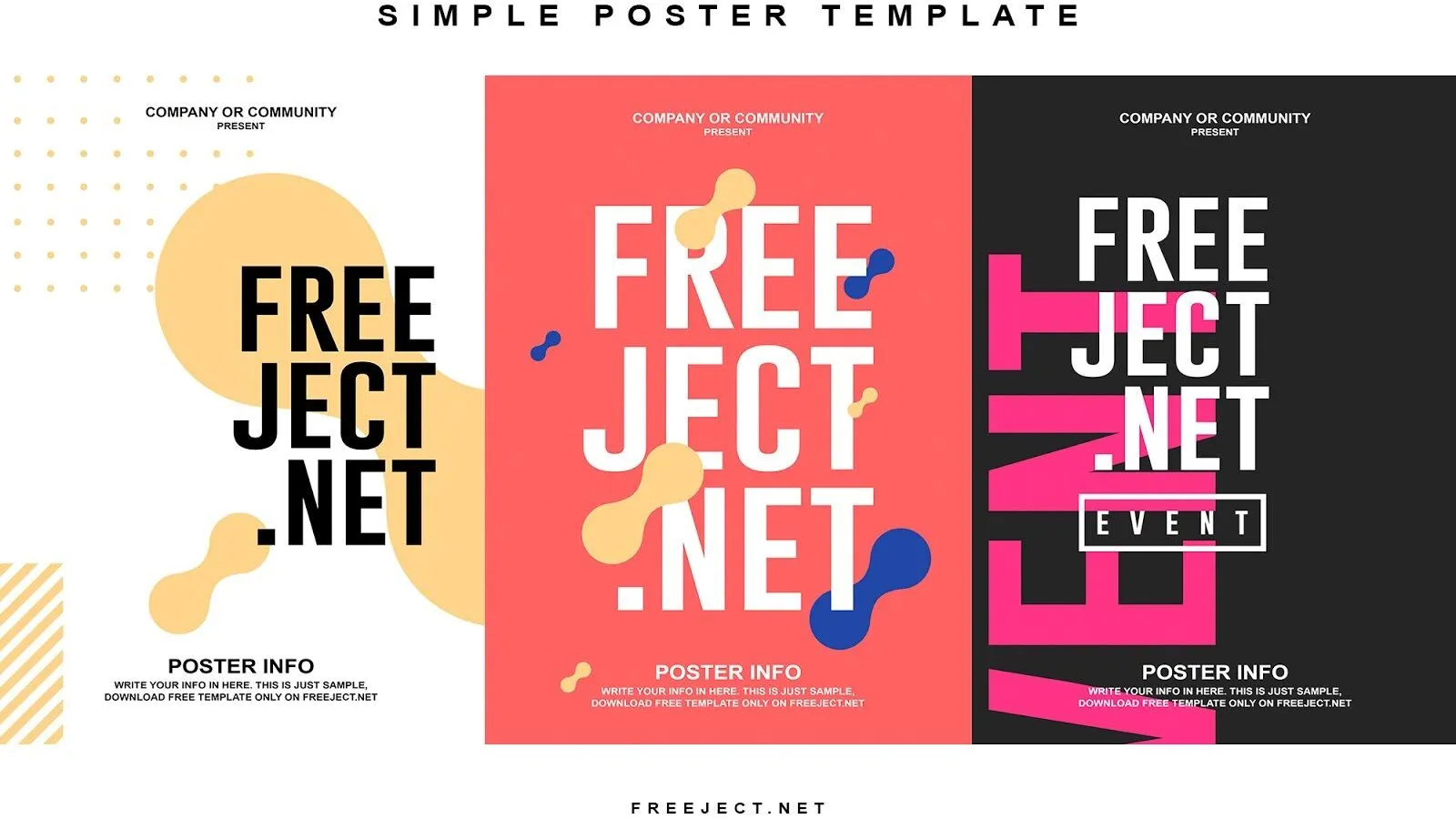 The 3 Colorful Simple Poster Template offers a versatile design that pairs well with any title. Its minimalistic style features three different templates, each showcasing a modern and understated aesthetic that appeals to a wide range of preferences.