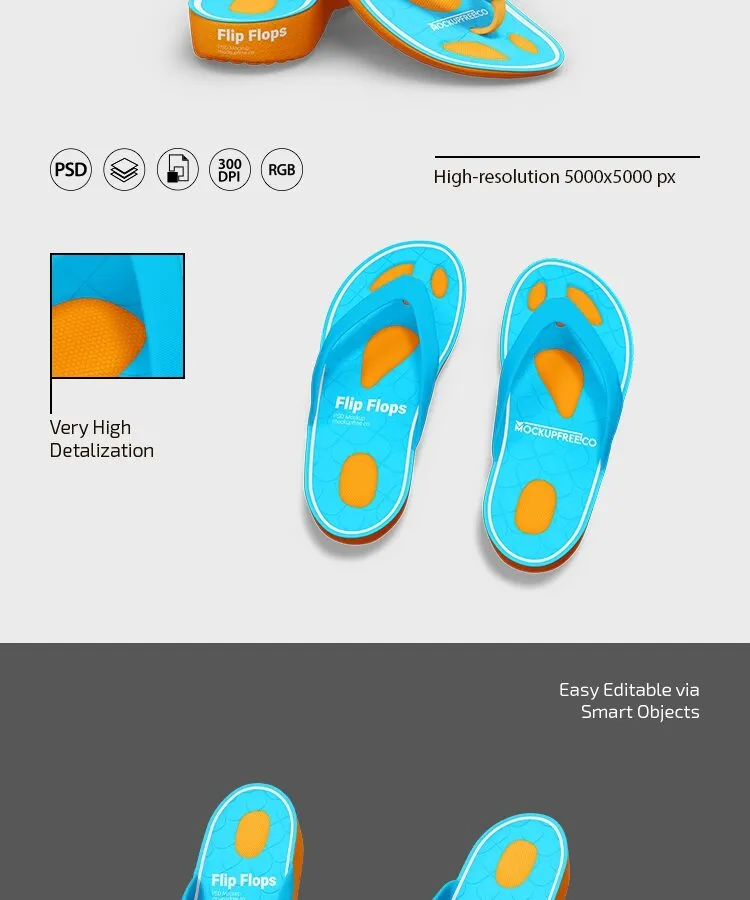 Now showcase your special design on these and help your clients visualize the final product in a flash. In this case, you’ll get different shots of fully customizable flip-flops. Open the PSD document on your device and refine it just the way you fancy.