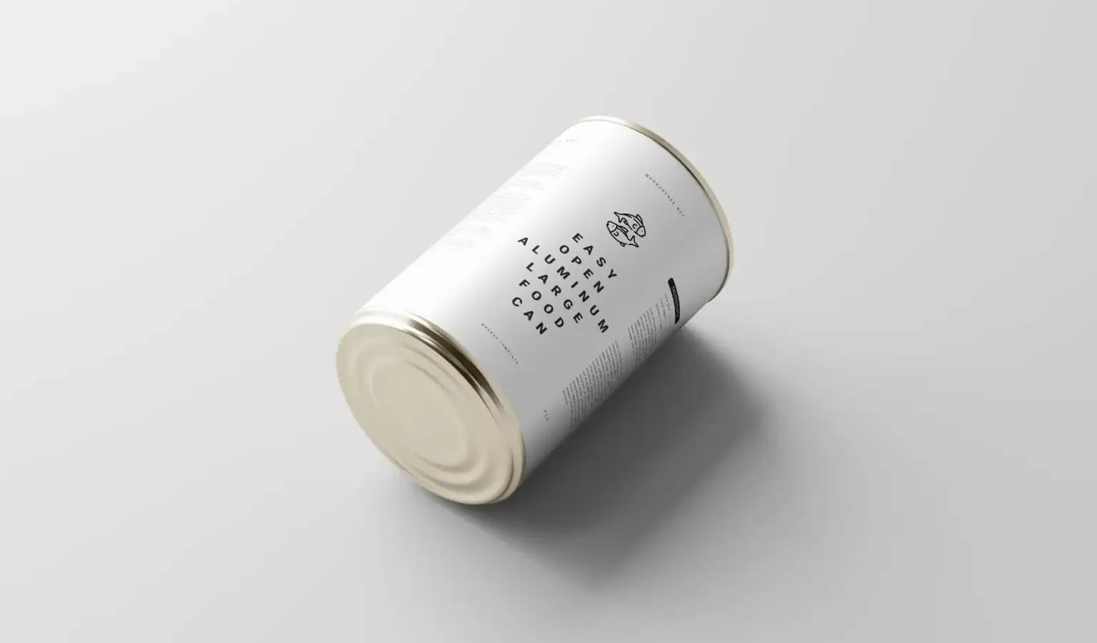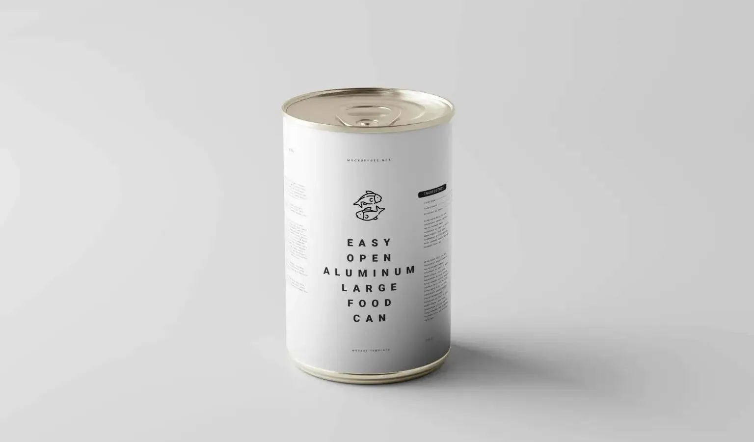 Promote the quality and freshness of your food product with this large-size aluminum food . This unique design tool includes five mockups that illustrate an easy-open can in a bright minimal background.