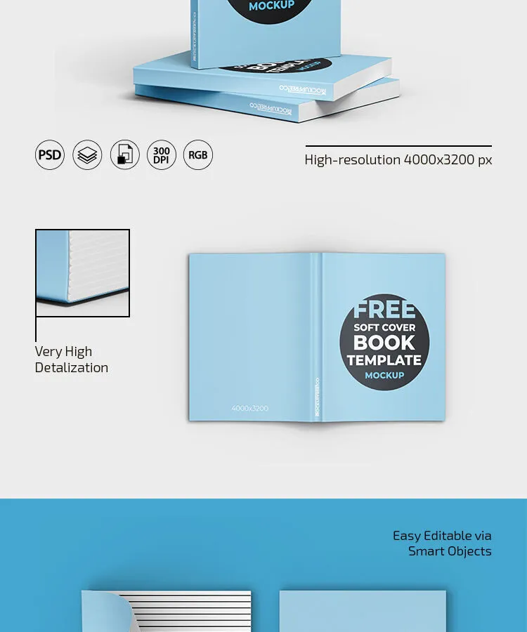 The 3 Mockups of Soft Cover Books offer a creative way to enhance your book ad designs. These high-resolution mockups provide different angles to help you present your book effectively. You can showcase your ideas on the back cover, front cover, spine, and first pages, making it easy to visualize the final product.