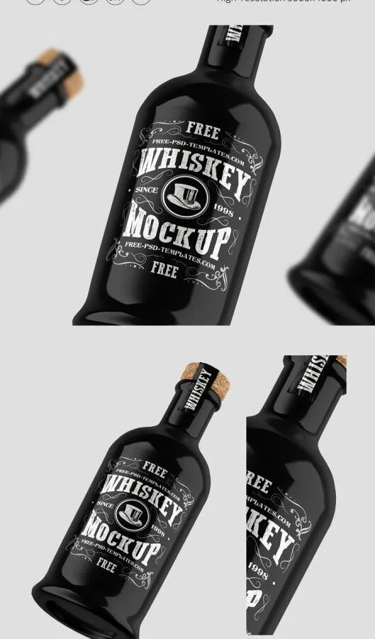 Let me pour you a few shots of whiskey from this top-notch bottle! This elegant whiskey is going to help you in your packaging design process and in presenting them to your target market. There are three mockups of a whiskey bottle along with its neat packaging box.