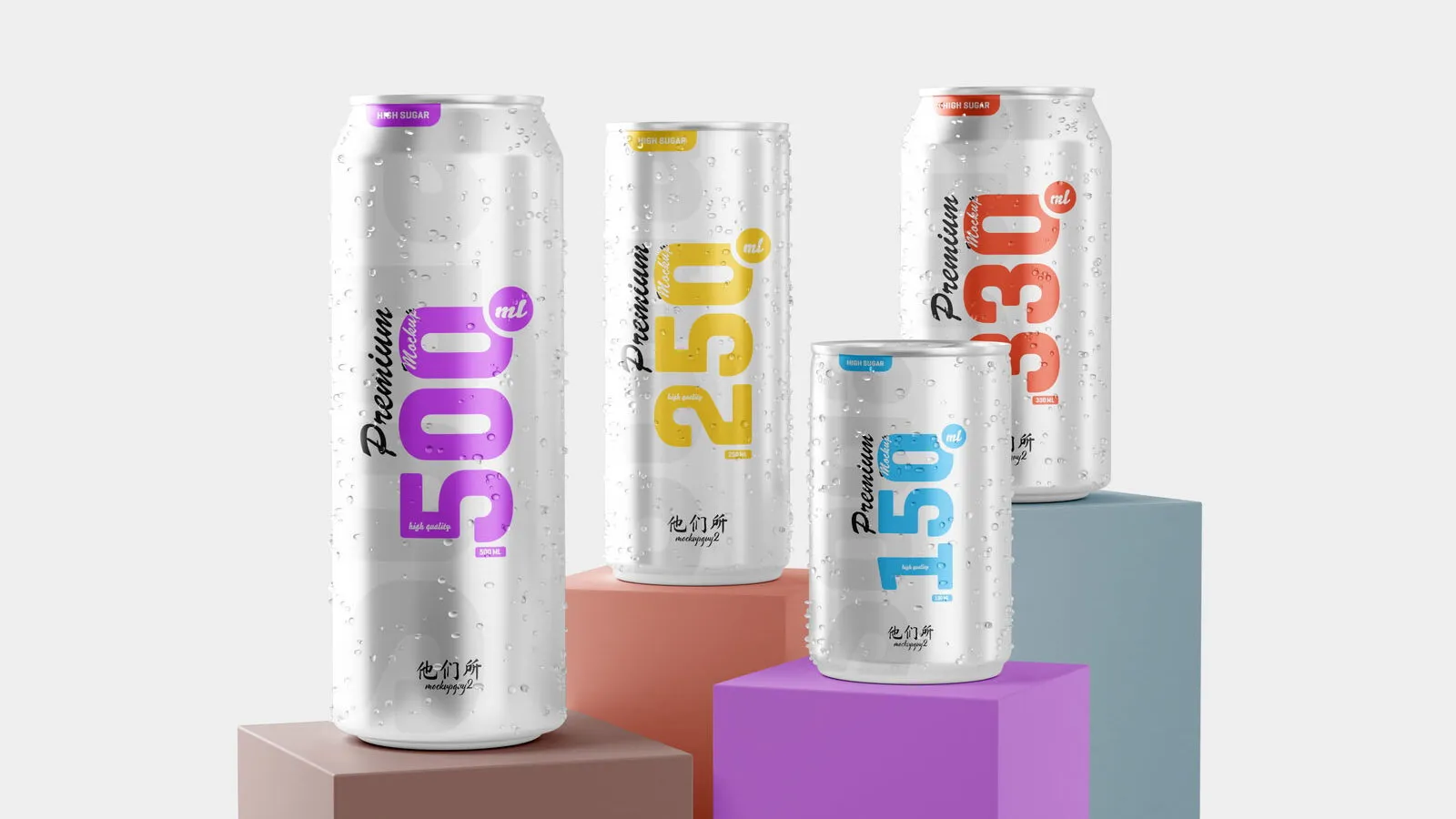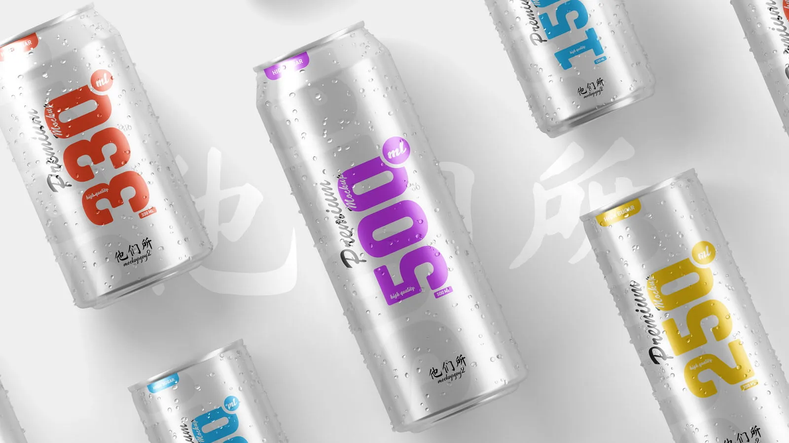 3 Shot of Multisize Beer Can Mockup