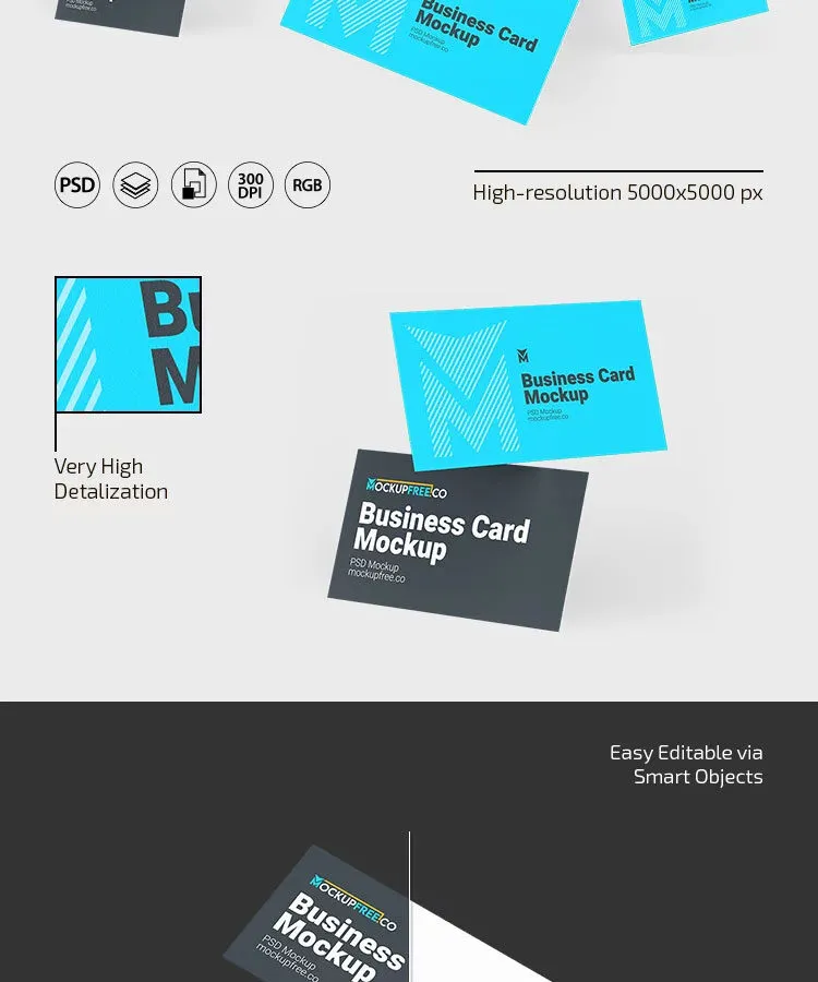 If you are designing a business card and need a professional way to showcase it, the 3 Shots of Business Card Mockup is a great choice. This free mockup provides a realistic and versatile layout that can complement any design style or industry. It is designed to help you present your business card design effectively.