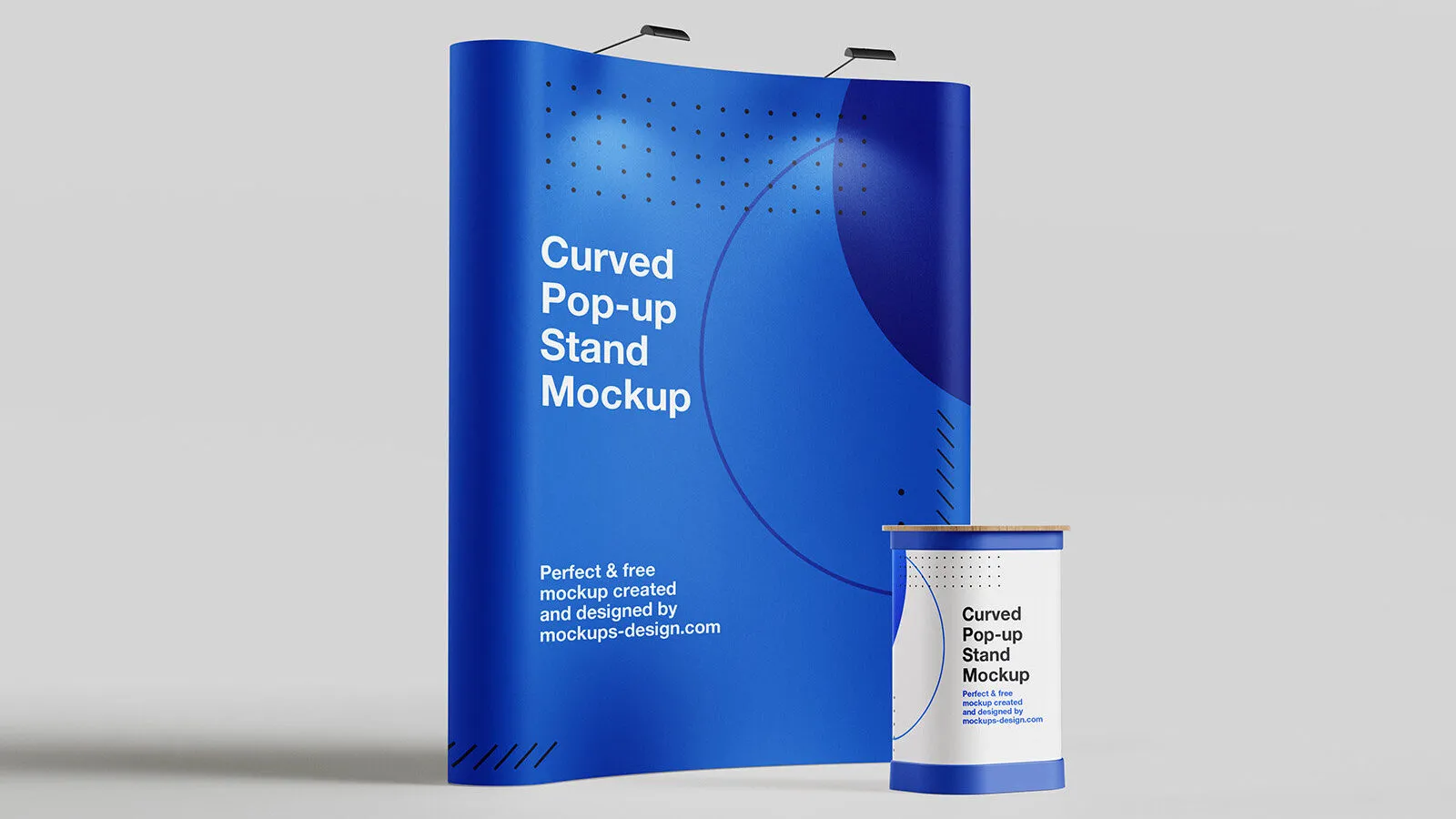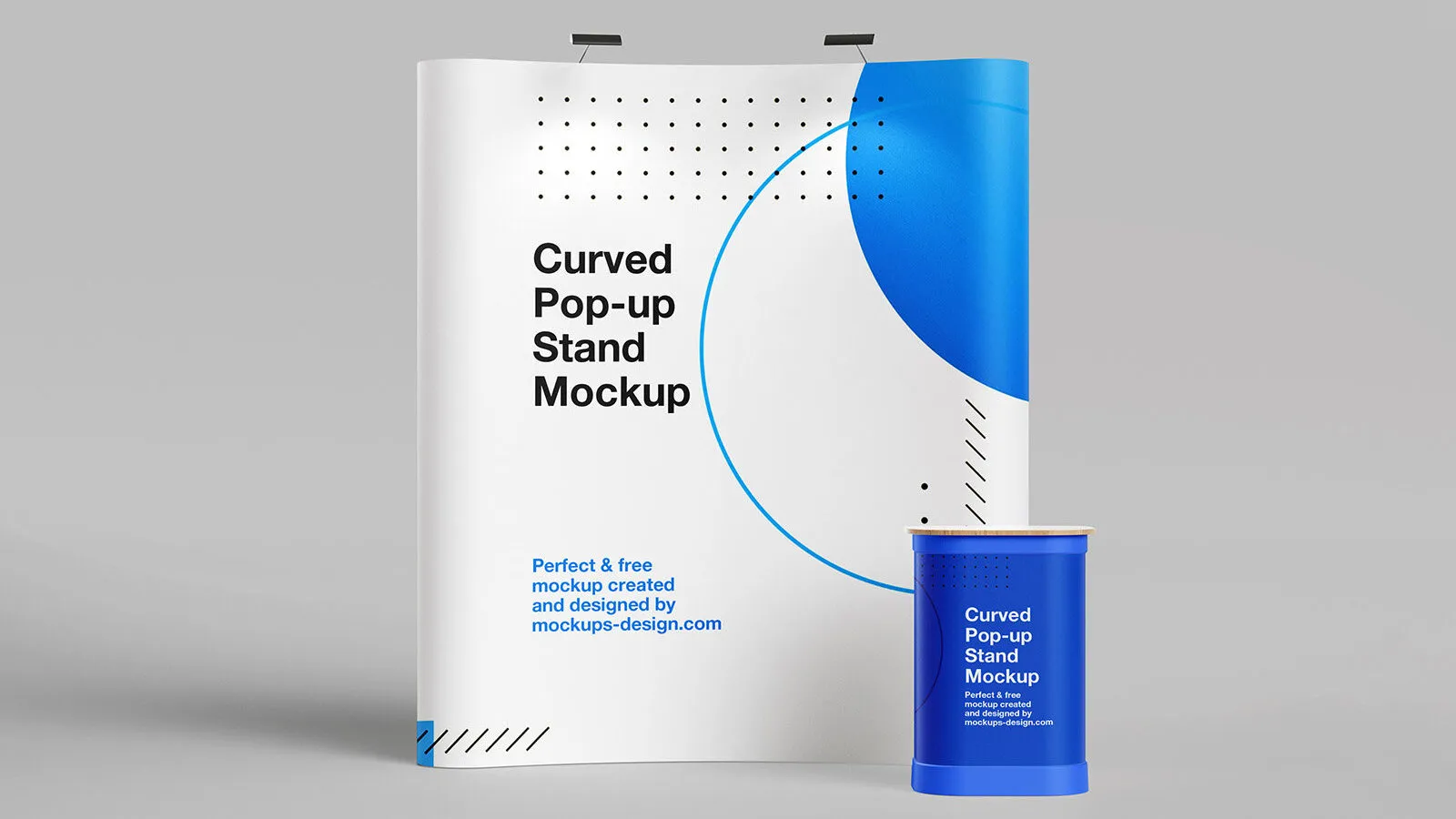 If you plan to make your name stand out with a unique presentation, using this unique curved pop-up would be a distinct selection. Place your logo and other details with your favorite lettering and create an impressive layout. You have a lot of options for logo fonts to make it happen.