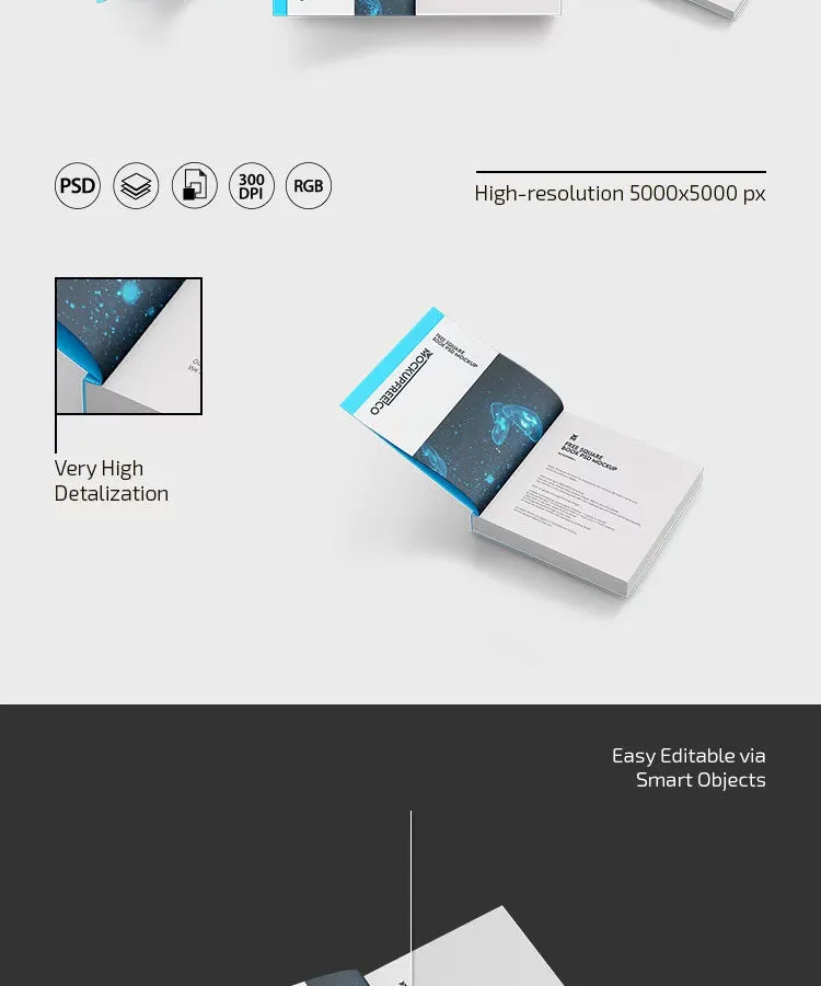 The 3 Sights of Square Open Book Mockup offers a modern and professional layout for your presentation needs. This design tool features realistic details that can effectively convey your message to your audience.