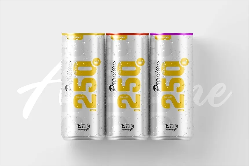 3 Views of 250ml Soda Can Mockup