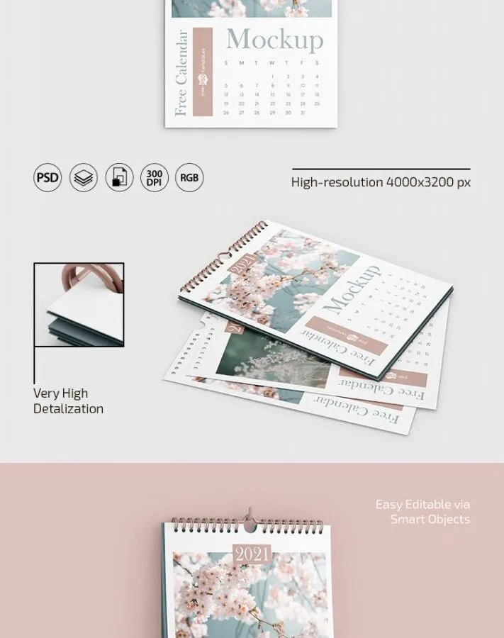 It’s always said that time flies. A calendar should be in front of your sight to be aware of spending time. Here are 3 with a floral theme that you can customize easily. These calendar mockups are designed in high resolution and are suitable for hanging on the wall.
