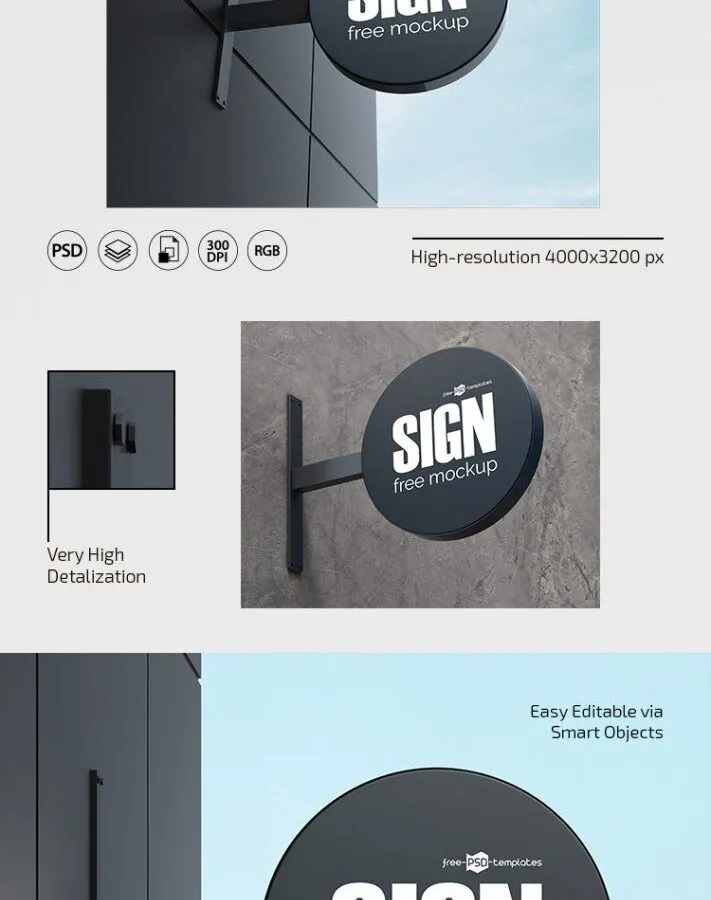 Feel free to add any logo, pattern, or graphic design with the help of smart objects. Use your creativity and help your clients to visualize the eventual product. For more sign mockups, check daily.