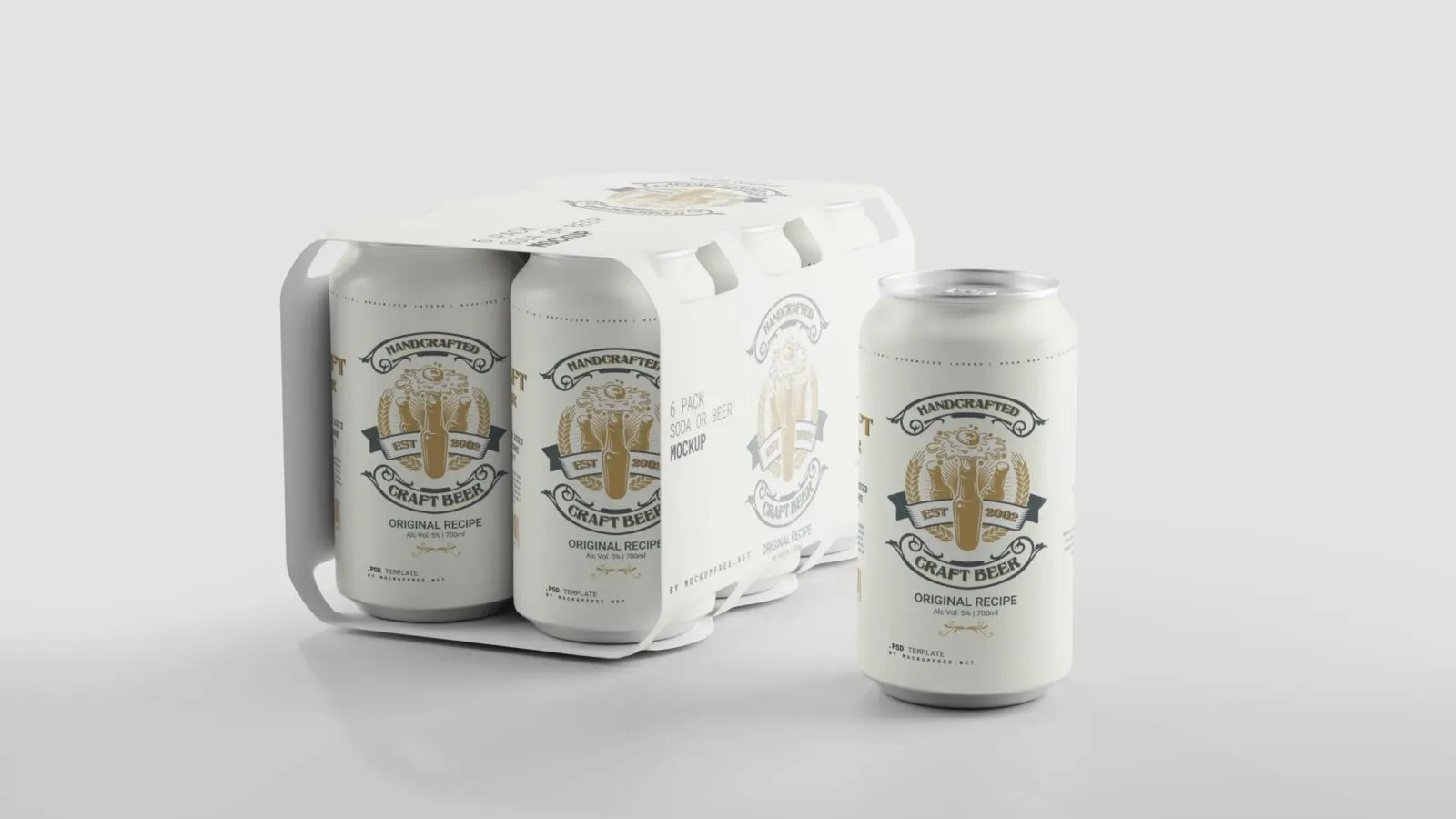 4 Beer Can Six Pack Mockup in Different Sights