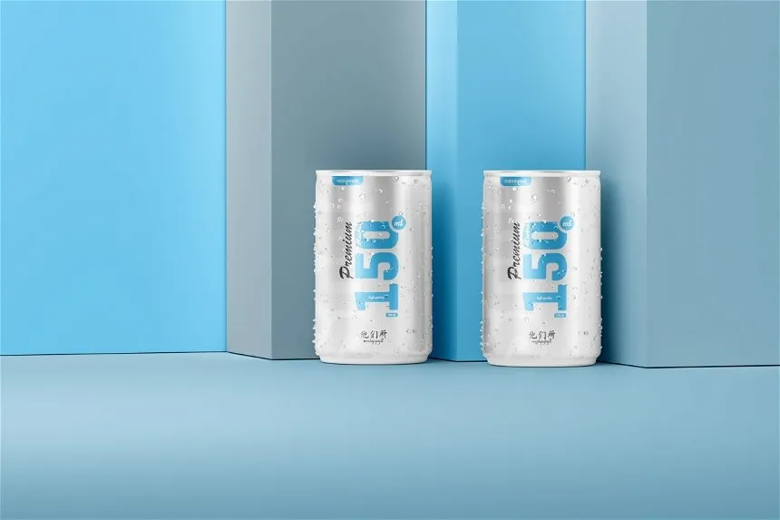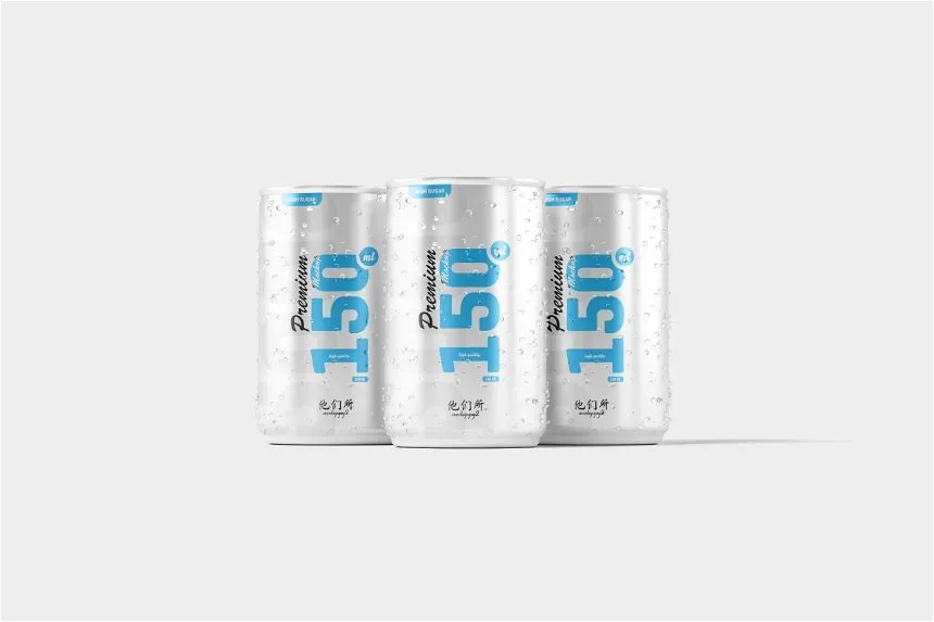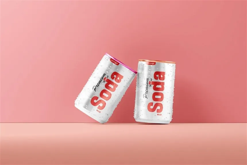 The 4 Different Visions of 150ml Soda Can Mockup offers a realistic design that can help your branding stand out by conveying a refreshing vibe. This mockup presents the soda can in four different perspectives, each with a cool and modern feel.