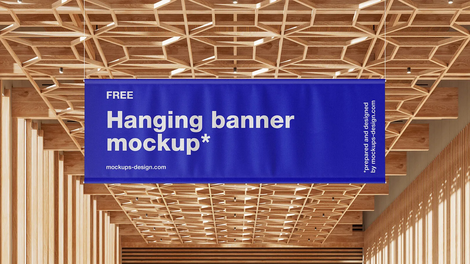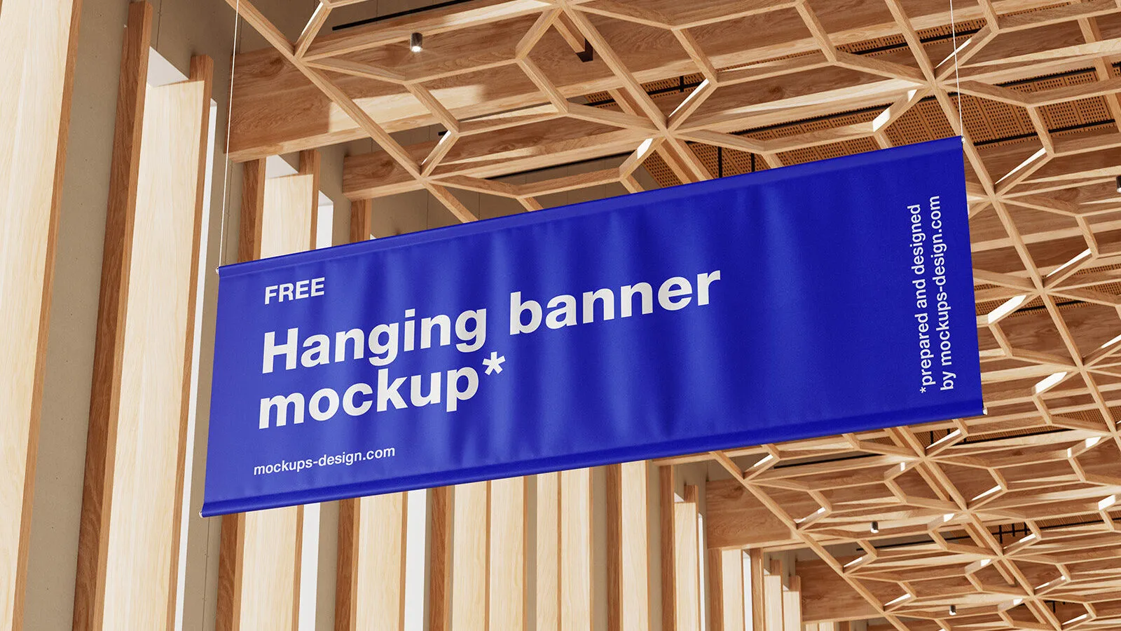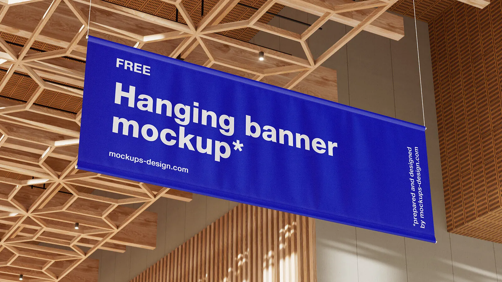 If you want to showcase your branding with a salient and modern vibe, this offer can be the right choice. This hanging in an expo hall comes in four shots and can illustrate your name in a professional and realistic mood and impress your clients.
