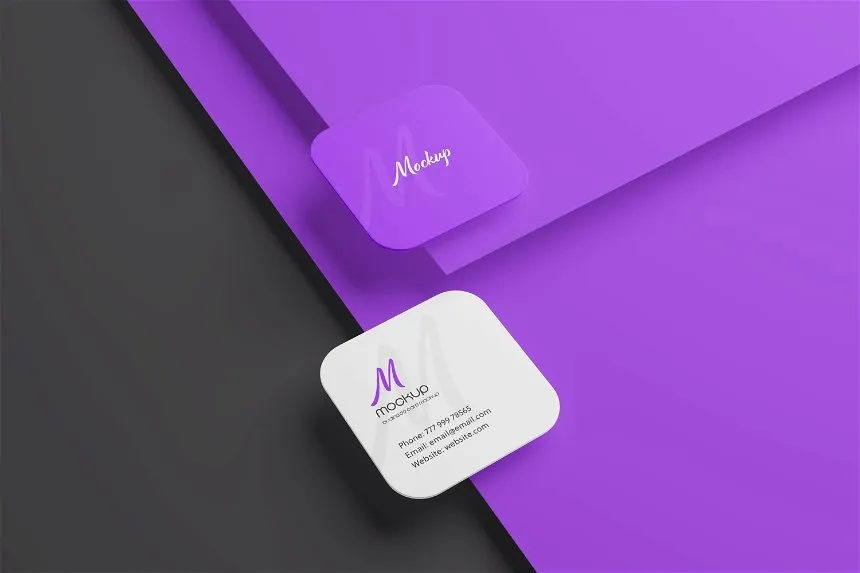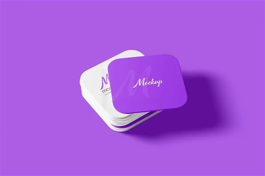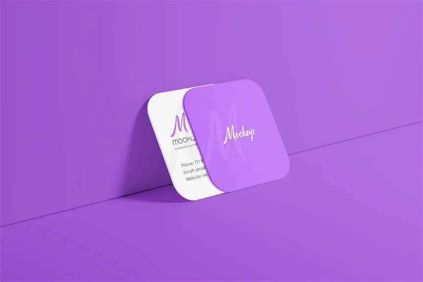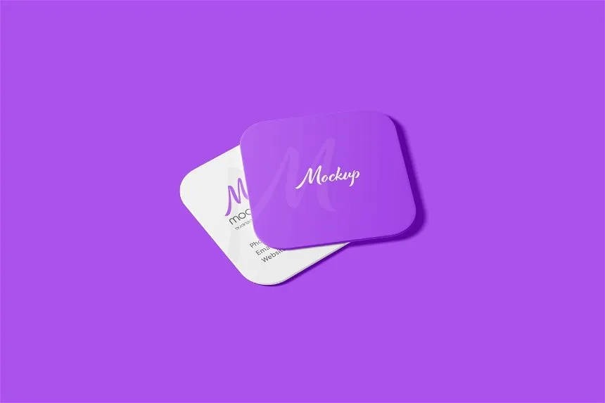 4 Distinct Sights of Square Round Corner Business Card Mockup