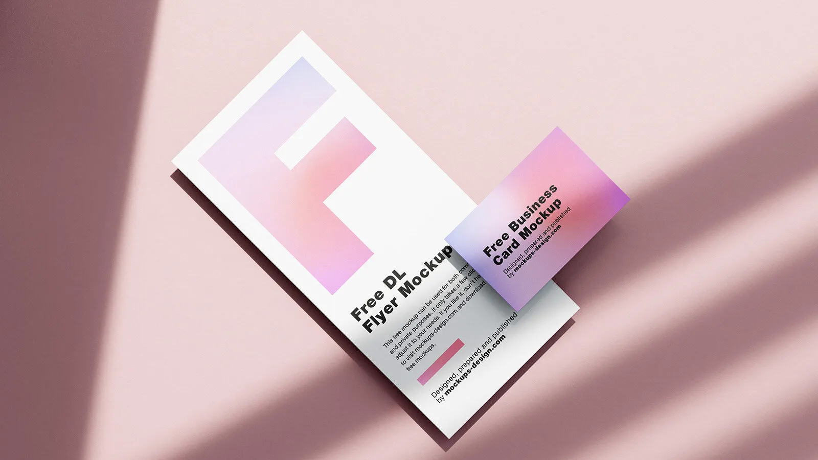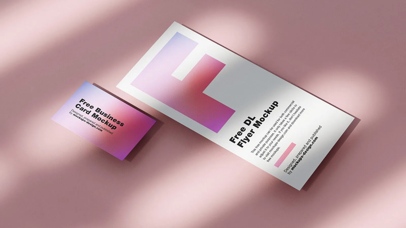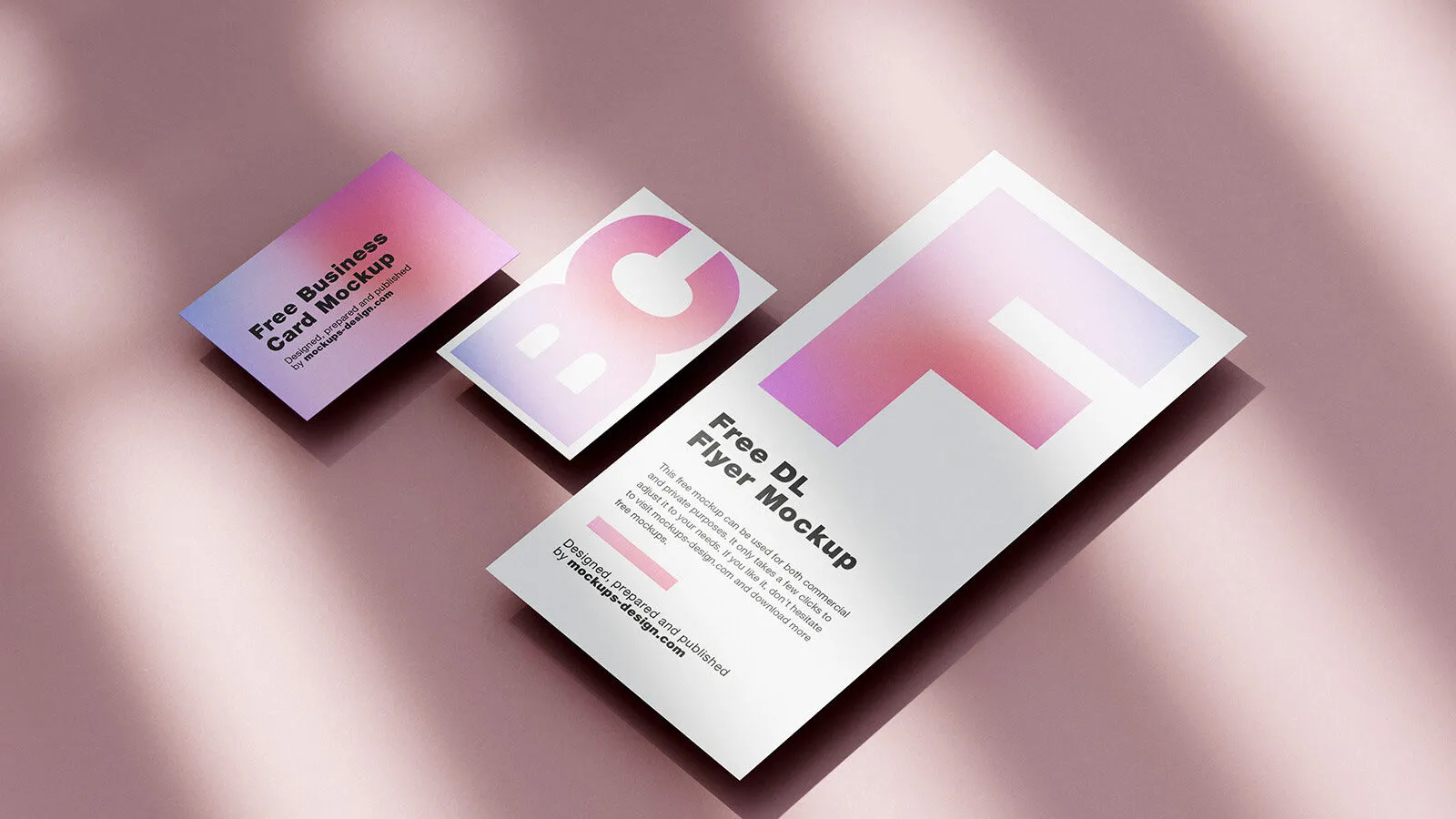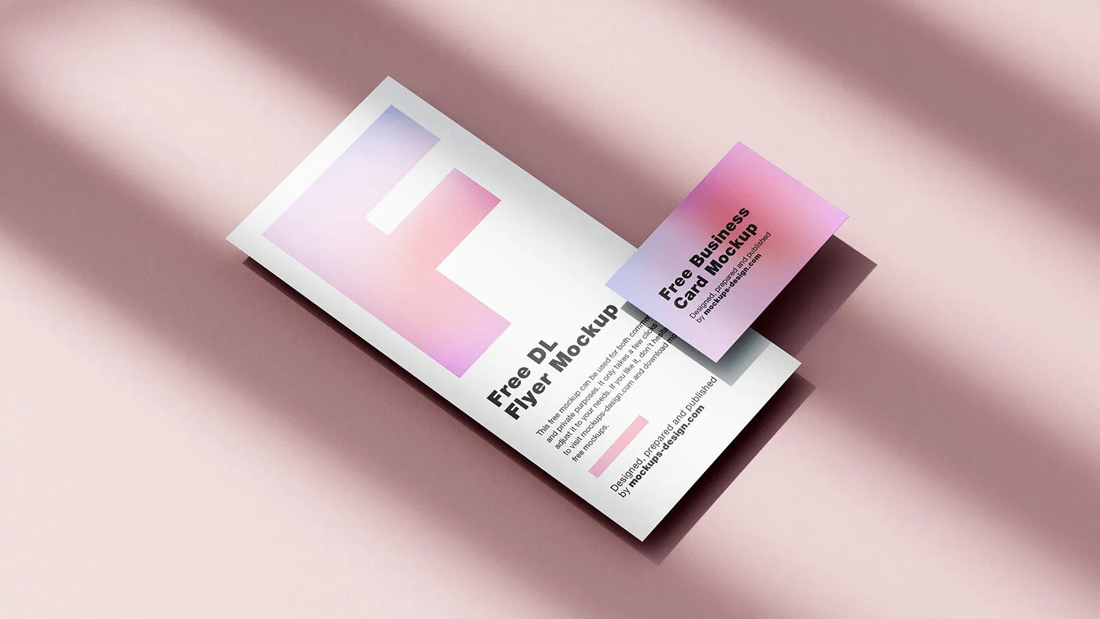 4 Flyer and Business Cards Mockup in Perspective Sight