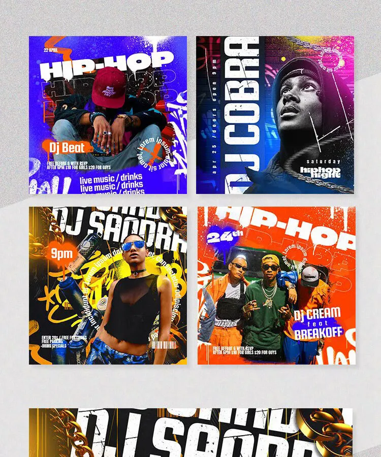 4 Graffiti Hip Hop Party Flyer / Instagram Post Templates