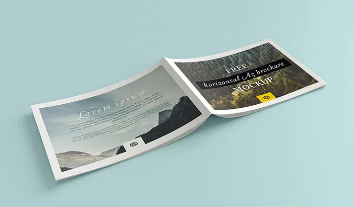 This stylish pack of mockups proves to be a great assistance when it’s a matter of showcasing a booklet design, a horizontal A5 to be more specific. It includes four mockups, all of them featuring a single booklet brochure lying down on a plain floor but in a different position at each shot.