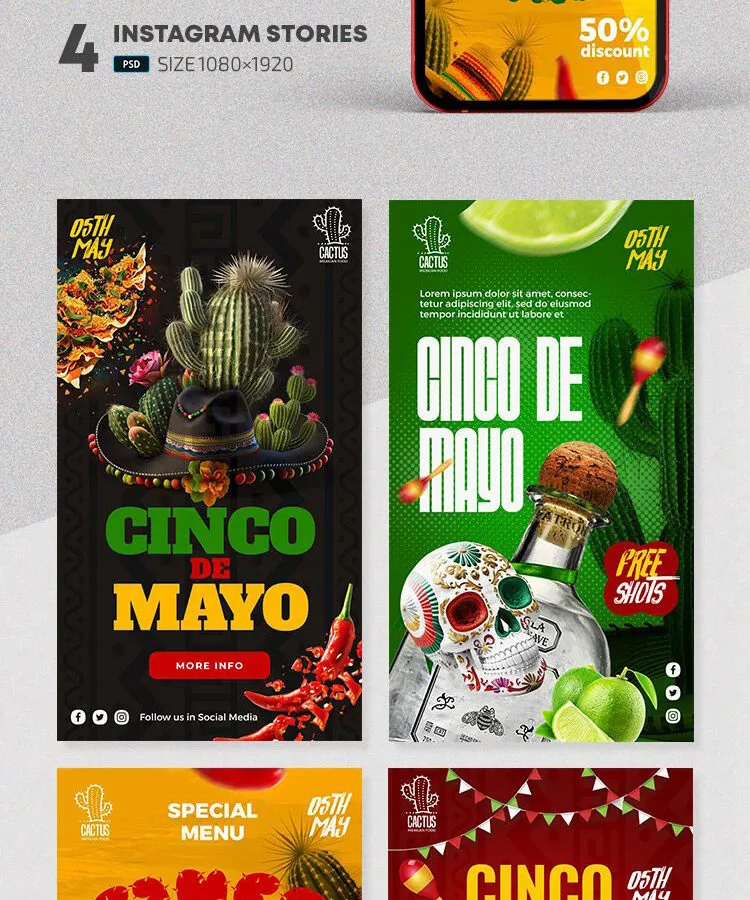 4 Vivid Cinco De Mayo Flyer / Instagram Stories and Post Templates