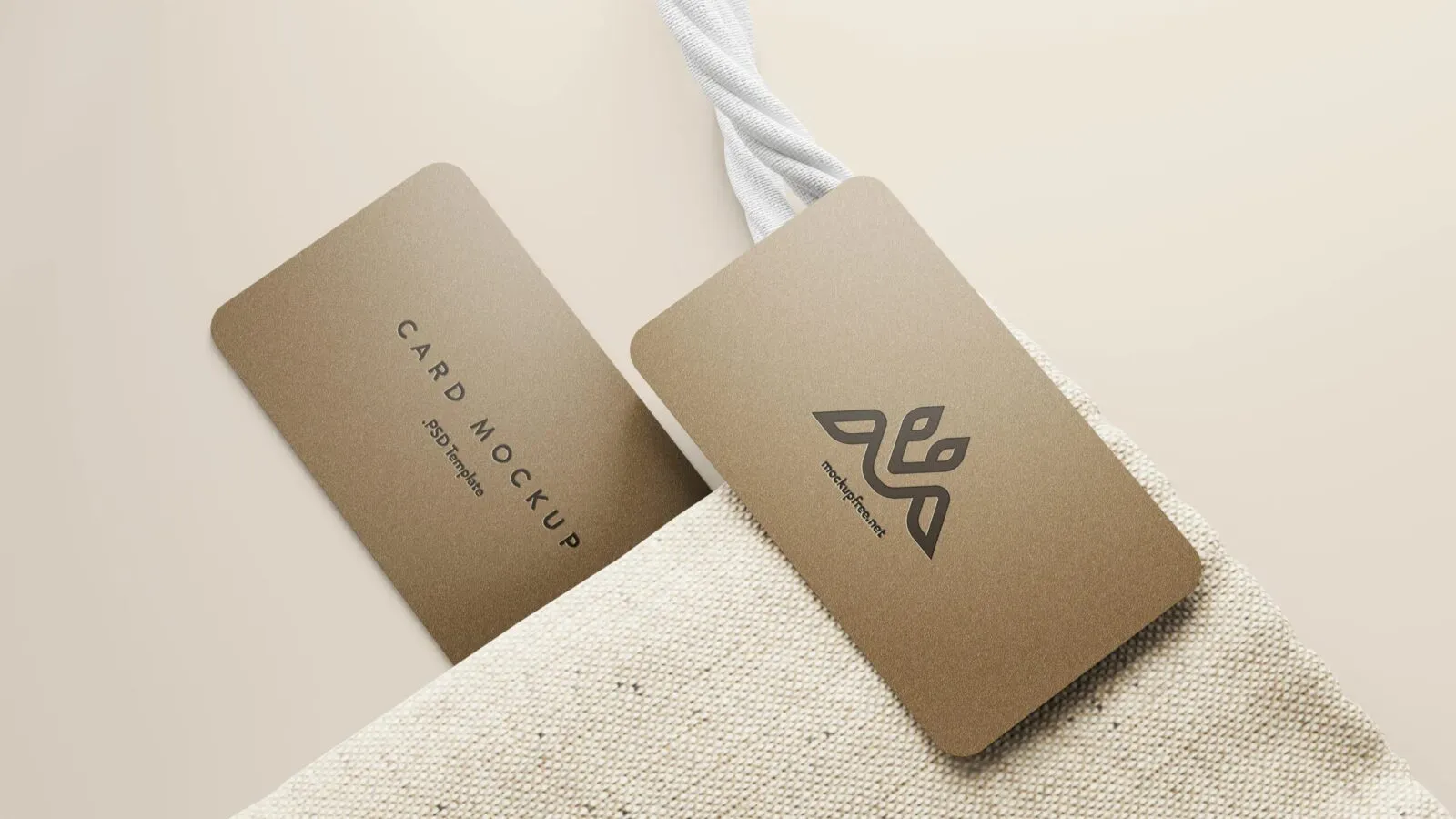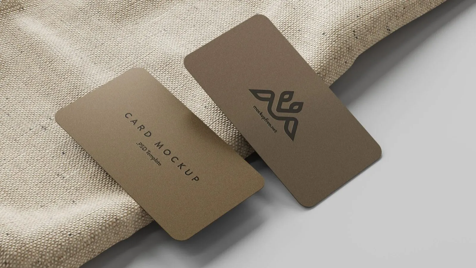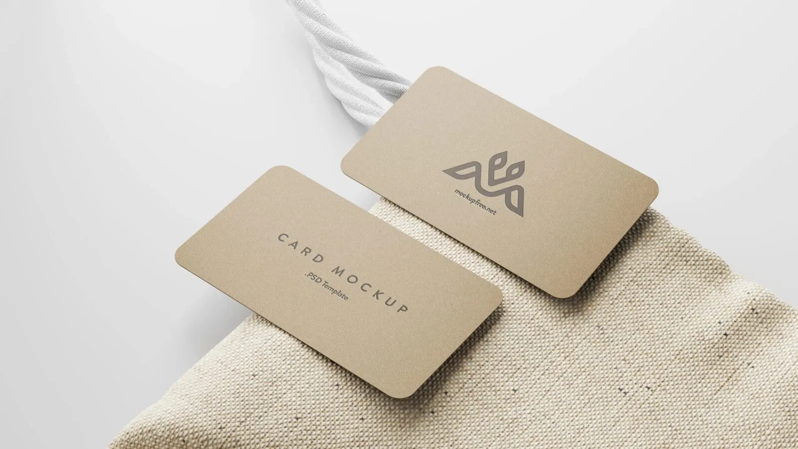 5 Business Cards Mockups On Burlap Sack in Perspective Sights