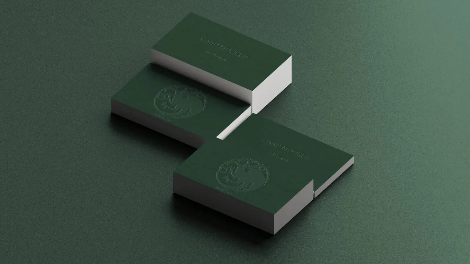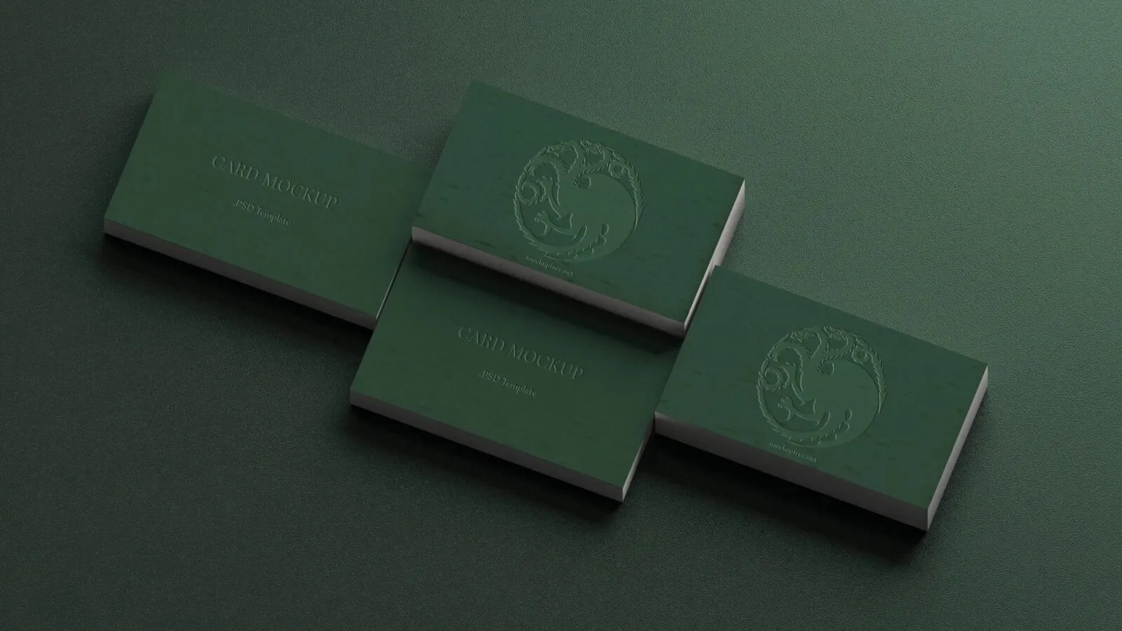 5 Business Cards Mockups with Embossed Text Effect in Varied Views
