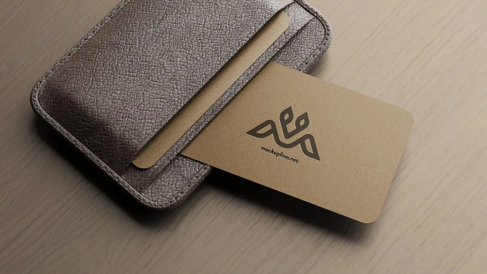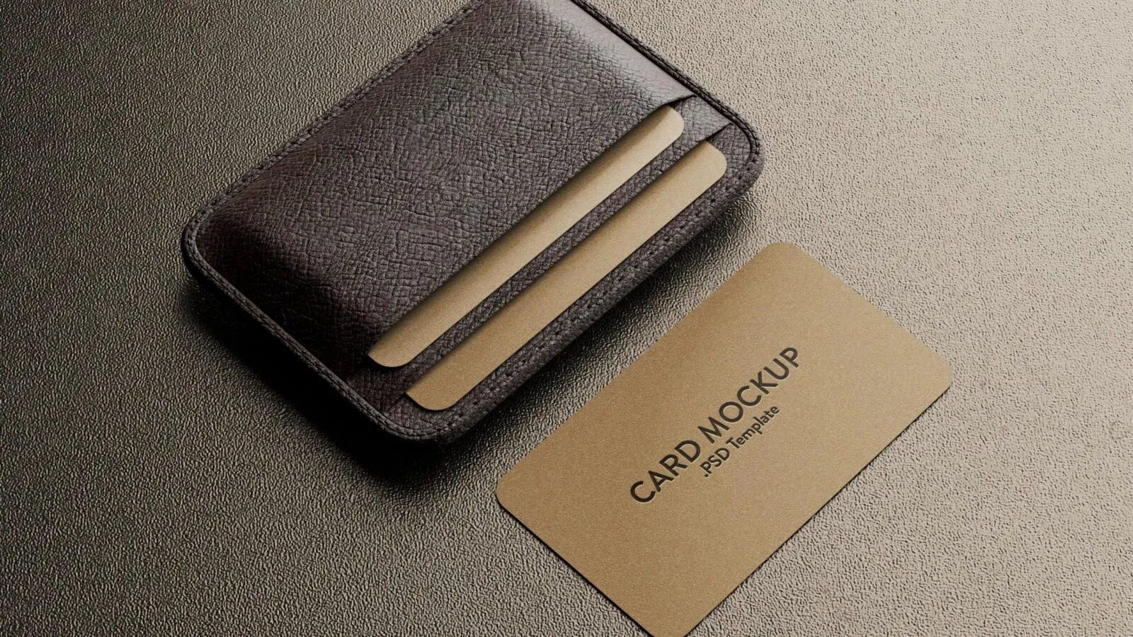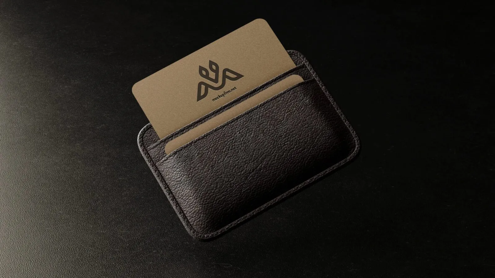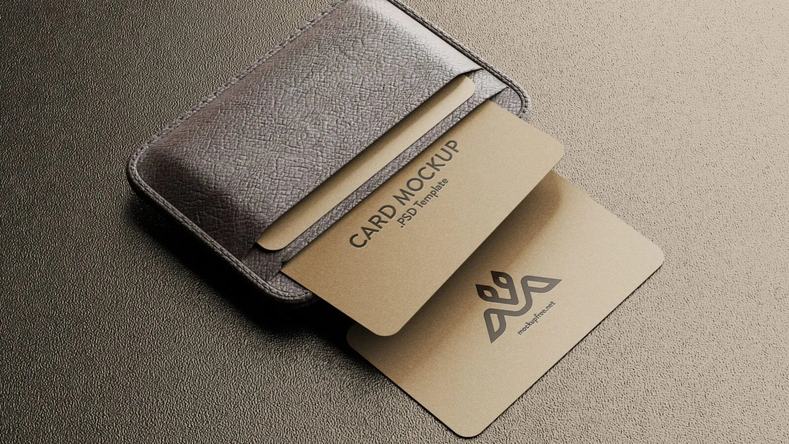 5 Business Cards Mockups with Leather Holder in Perspective View