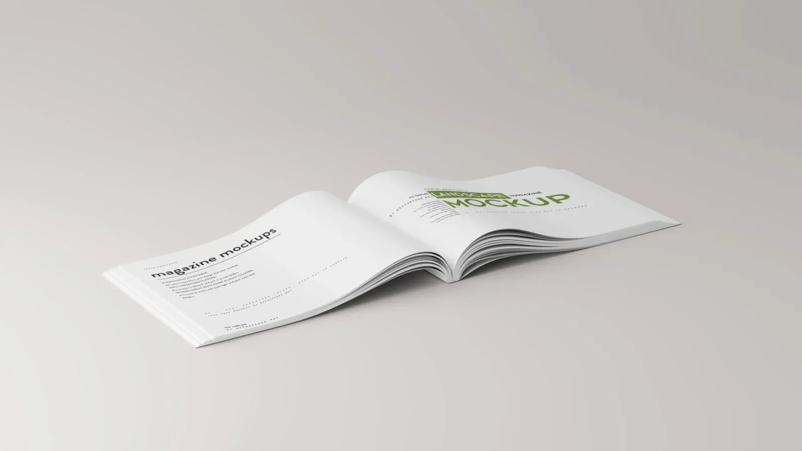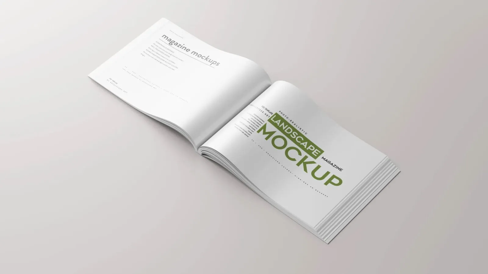 5 Horizontal Open Magazine Mockups in Top and Perspective Sights