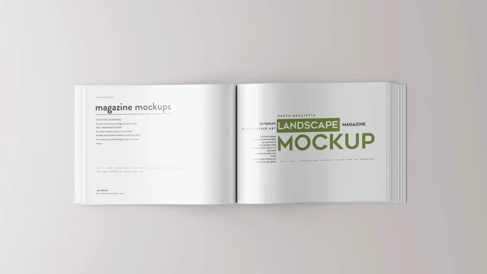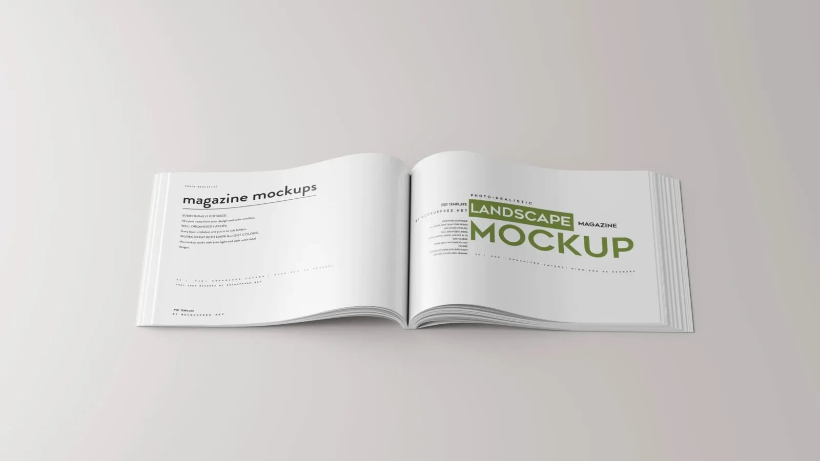 Create an interesting design for your layout and showcase it to your readers with this unique and realistic . This product includes 5 mockups of an open landscape magazine, and you can use your favorite shot to present your ideas.