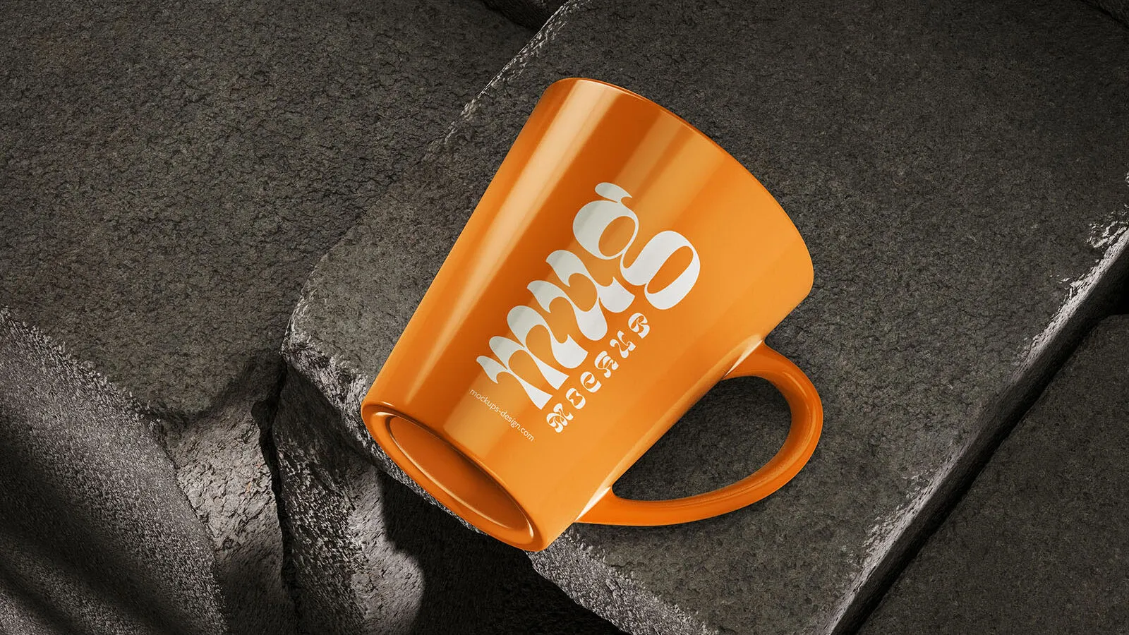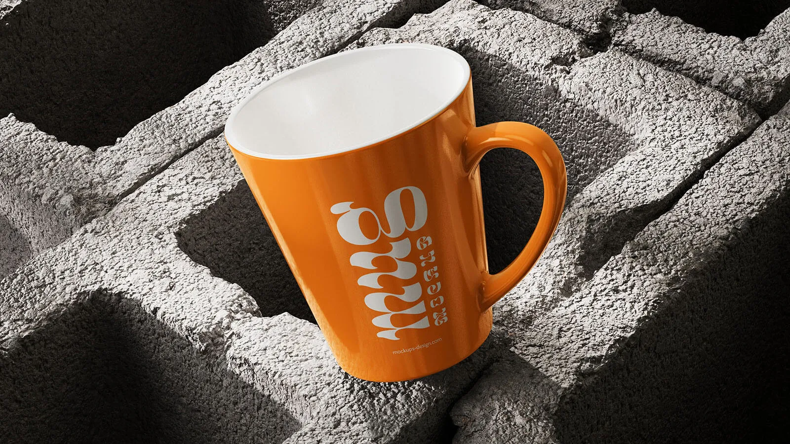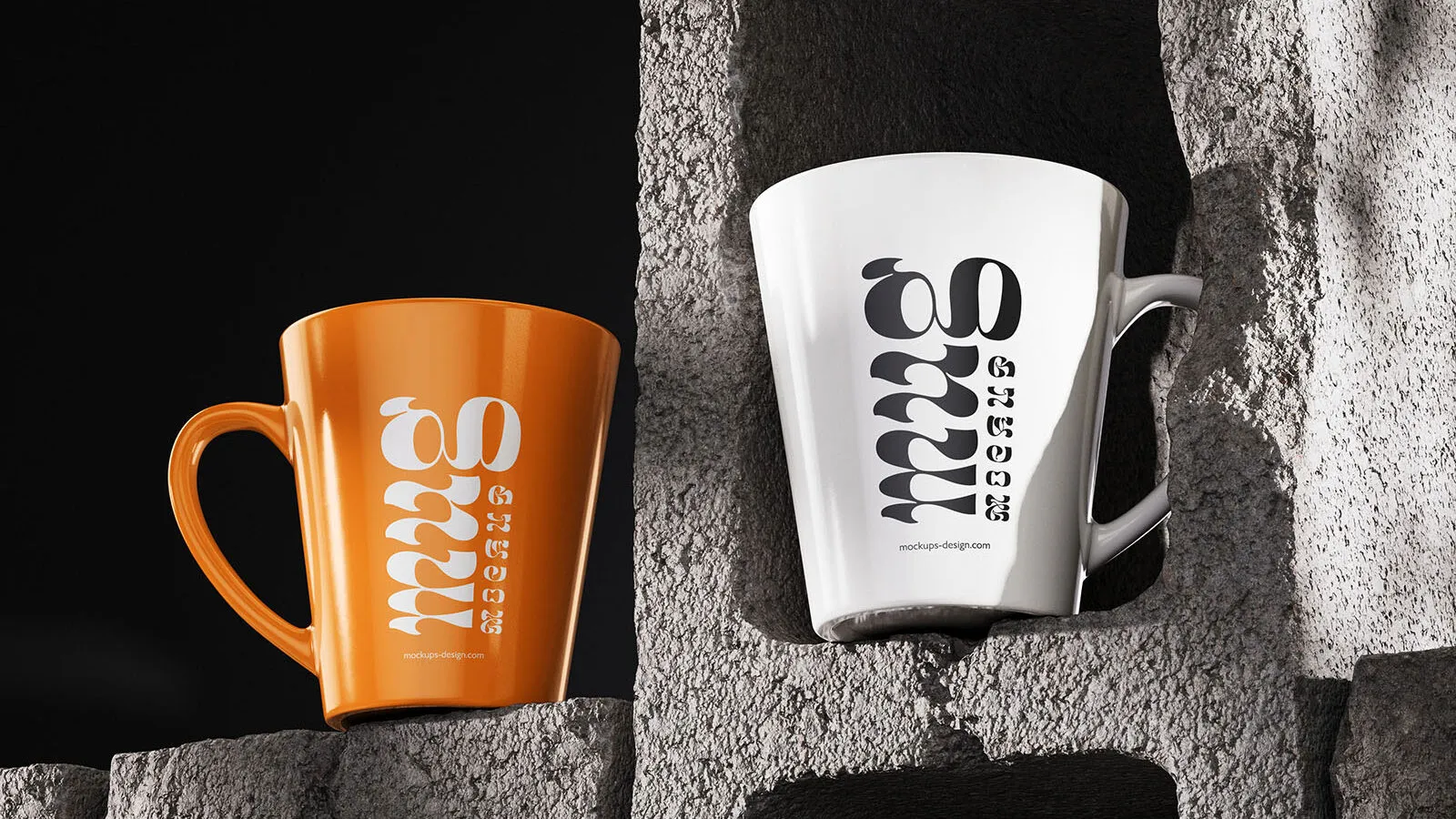 The mugs are set against a concrete brick background, creating an appealing contrast with lighting and shadows that highlight your design. This mockup is user-friendly and can effectively showcase your work, helping to enhance the presentation of your shop.