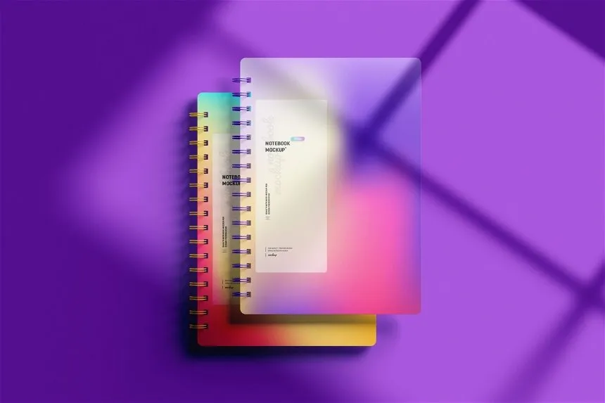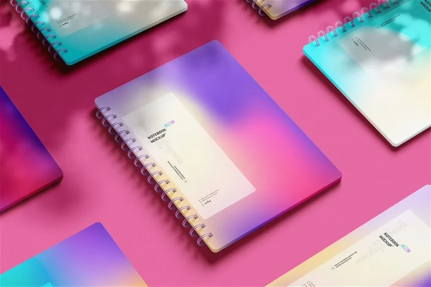 5 Sights of Spiral Notebook Mockup with Shadow Overlay