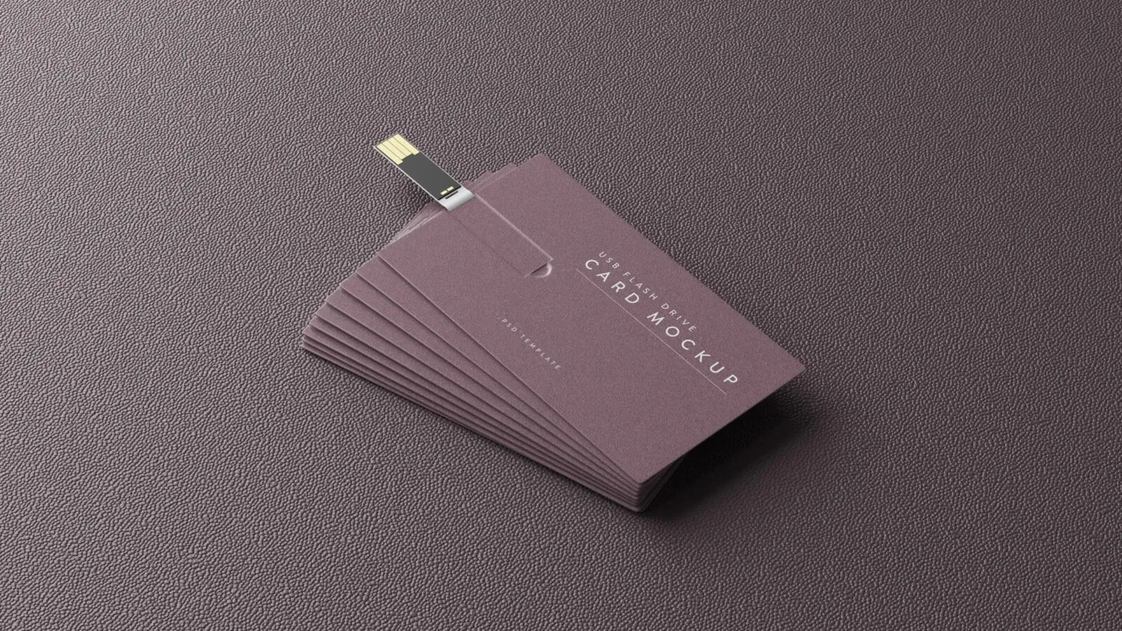 5 USB Flash Drive Business Card Mockups in Distinct Shots