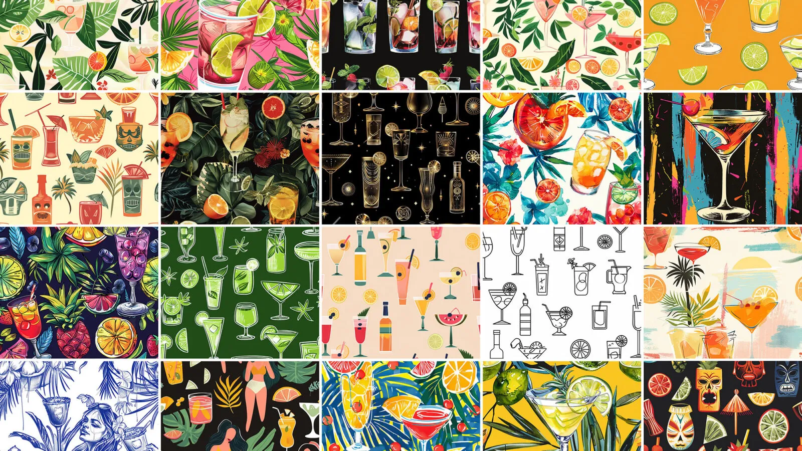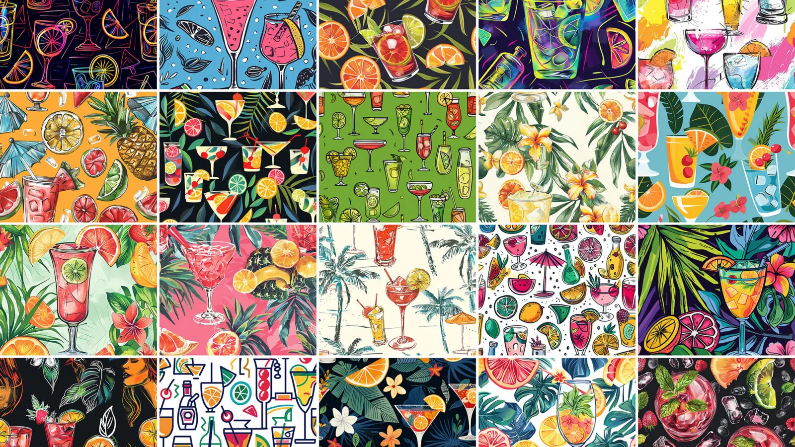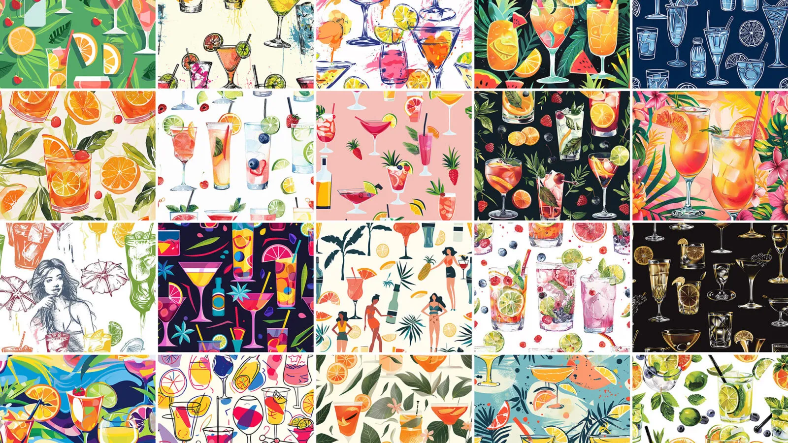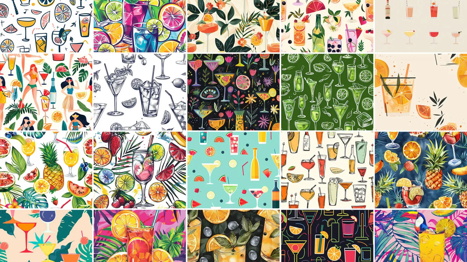 These versatile patterns are perfect for creating engaging menus for cafés or designing packaging for new beverage brands. They can also enhance websites with their vibrant and entertaining flair, helping to create an inviting atmosphere for your audience. Explore this bundle and discover how these cocktail patterns can elevate your designs.