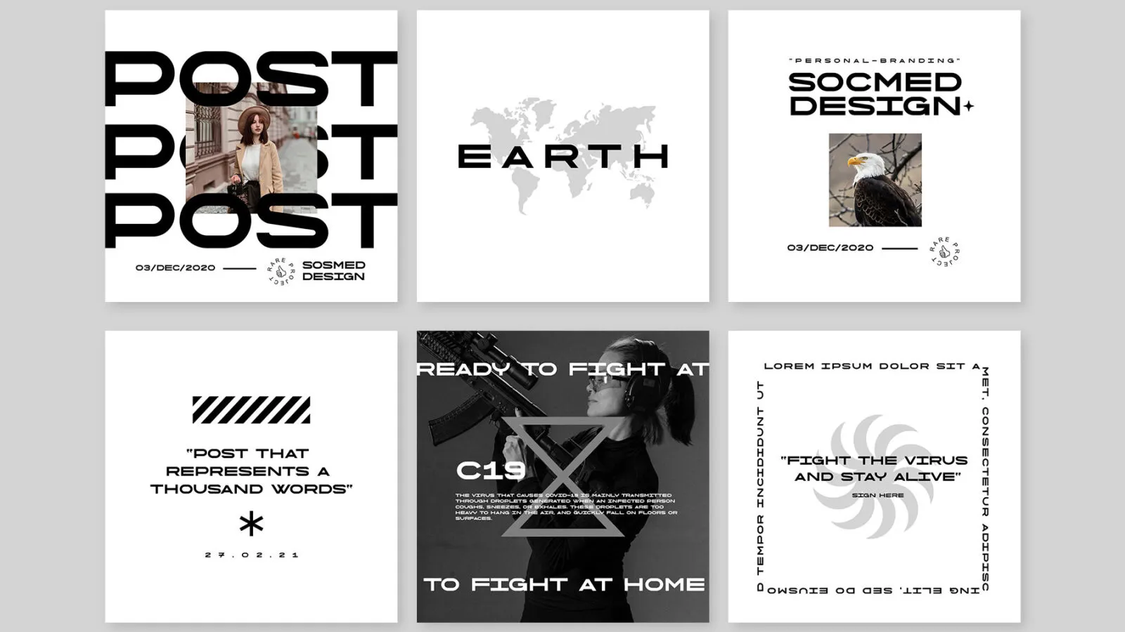 These templates offer a sleek and modern design for your promotional needs. Featuring six different layouts with a bright background, the C19 social media post templates create an elegant and eye-catching presentation.