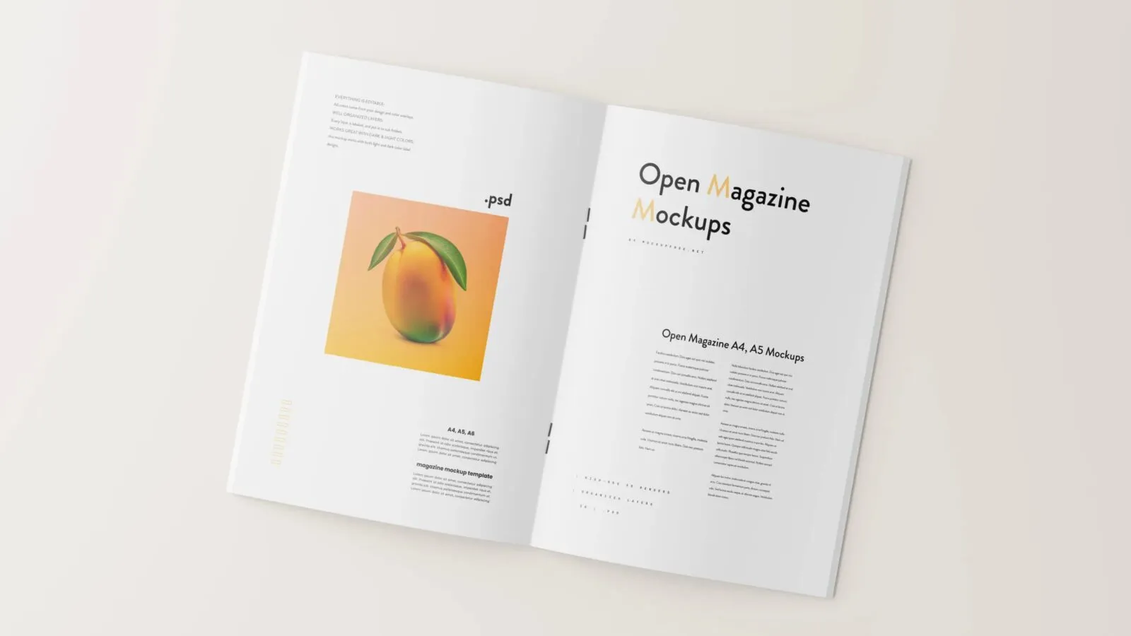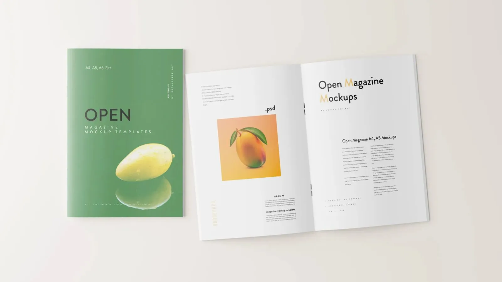 If you need a minimal and striking layout to present your novel artwork or introduce your branding, this would be a perfect selection. Six mockups of an open magazine in distinct backgrounds provide you with varied realistic visions.