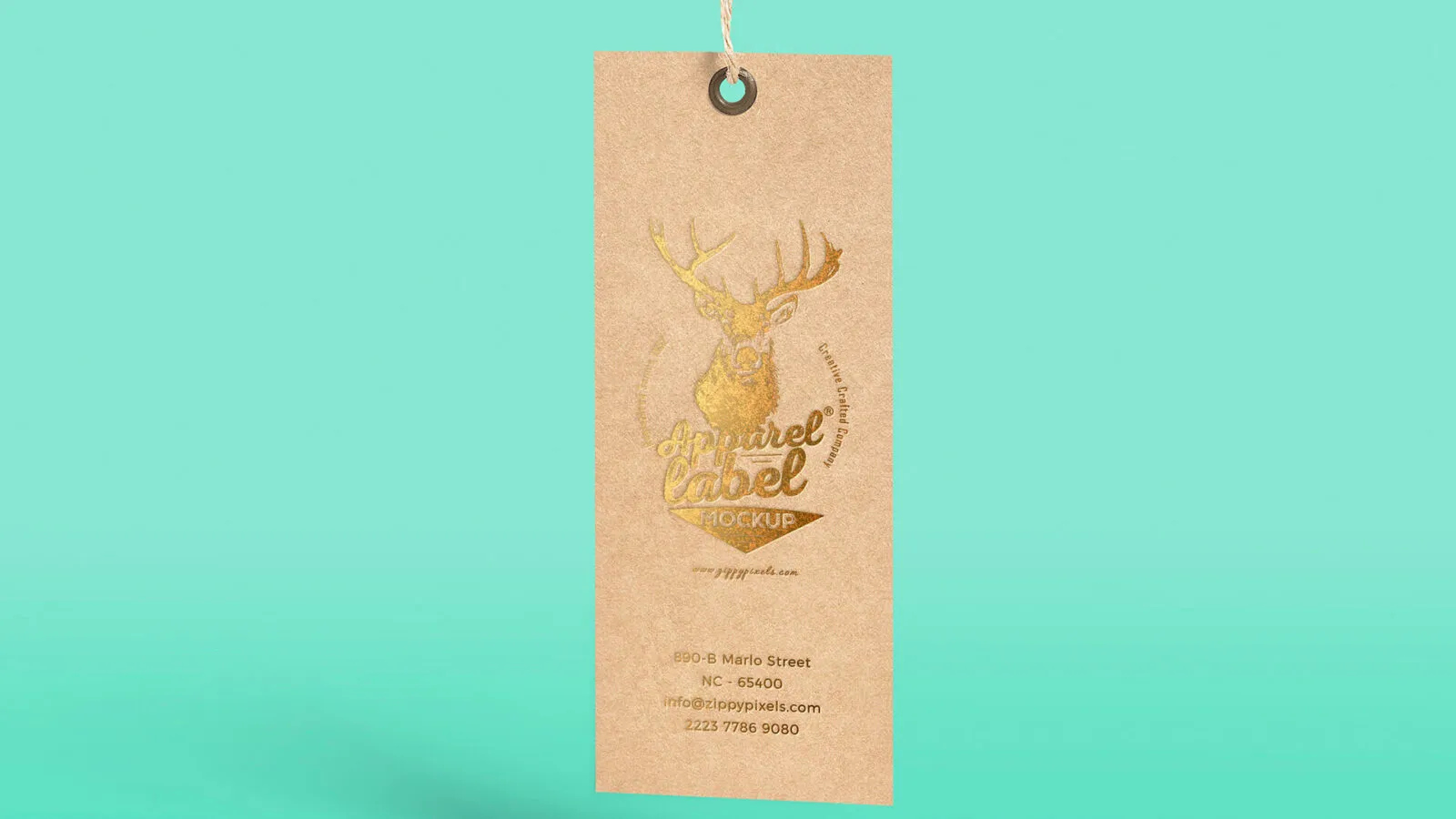 An adjustable all-purpose that can take care of your amazing designs for related clothing and branding label tag presentations. It comes in the standard size of 2.25″ x 5.5″. It’s also fully customizable. For example, you can easily edit the punch hole color, background color, and front-facing design super artistic and great. You have two chances in this mockup which one that features excellent golden color customization while the other allows an infinite customization option however you desire.